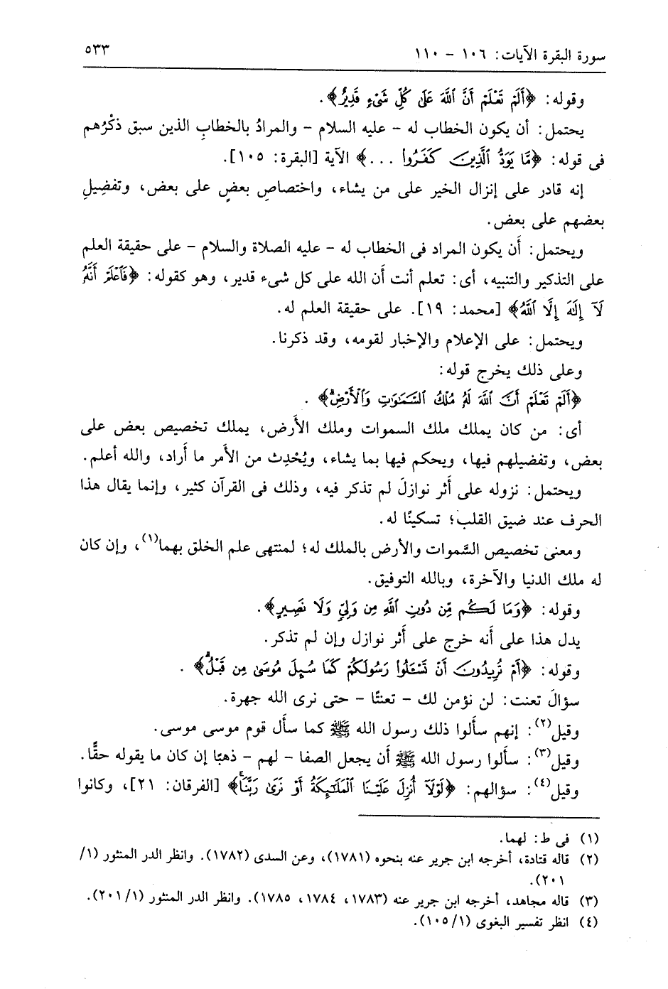 وقوله: (أَمْ تُرِيدُونَ أَنْ تَسْأَلُوا رَسُولَكُمْ كَمَا سُئِلَ مُوسَى مِنْ قَبْلُ (108)