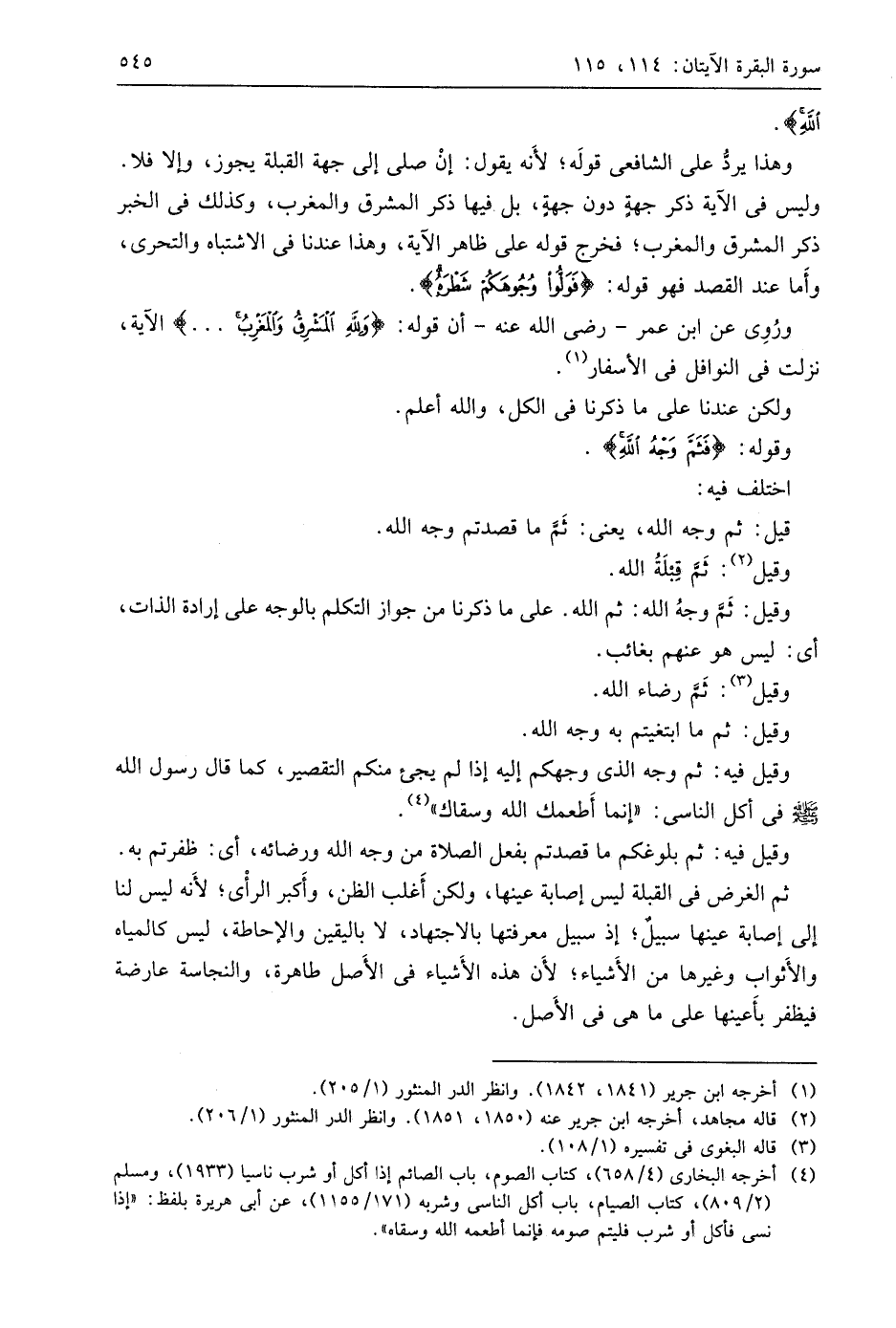 وقيل فيه: ثم وجه الذي وجهكم إليه إذا لم يجئ منكم التقصير، كما قال رسول الله - صَلَّى اللَّهُ عَلَيهِ وَسَلَّمَ -في أكل الناسي: " إنما أَطعمك اللَّه وسقاك ".