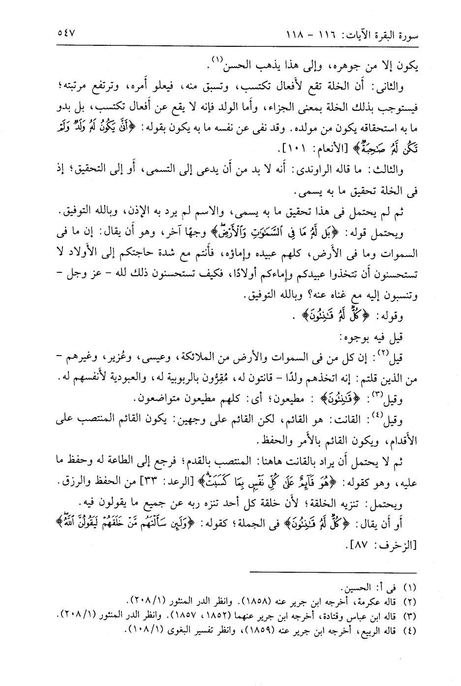 أَو أَن يقال: (كُلٌّ لَهُ قَانِتُونَ) في الجملة؛ كقوله: (وَلَئِنْ سَأَلْتَهُمْ مَنْ خَلَقَهُمْ لَيَقُولُنَّ اللَّهُ).