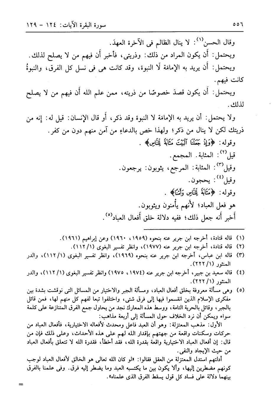 ولا يحتمل: أن يريد به الإمامَة لا النبوة وقد ذكر، أَو قال الإنسان: قيل له: إِنه من ذريتك لكن لا ينال من ذكر؛ ولهذا خص بالدعاءِ من آمن منهم دون من كفر.