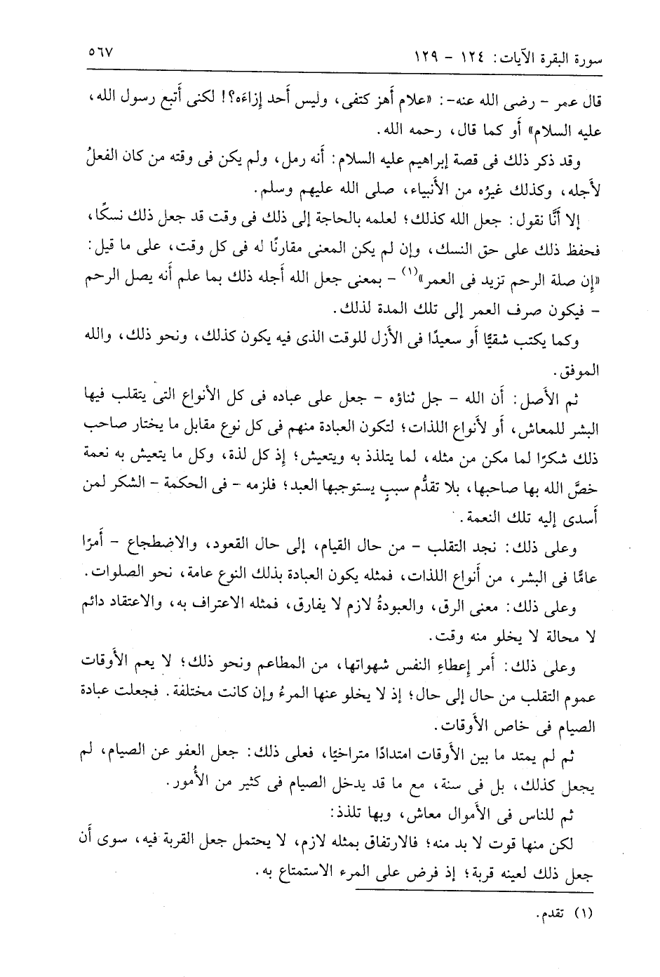إلا أَنا نقول: جعل اللَّه كذلك؛ لعلمه بالحاجة إلى ذلك في وقت قد جعل ذلك نسكًا، فحفظ ذلك على حق النسك، وإن لم يكن المعنى مقارنًا له في كل وقت، على ما قيل: " إِن صلة الرحم تزيد في العمر " -بمعنى جعل اللَّه أَجله ذلك بما علم أَنه يصل الرحم- فيكون صرف العمر إلى تلك المدة لذلك.