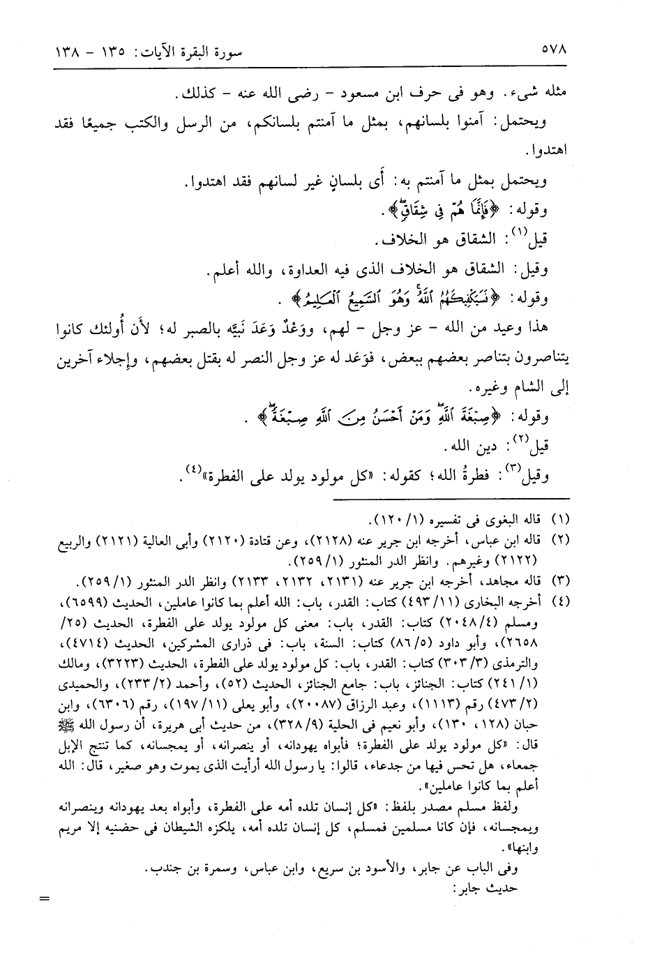 وقوله: (صِبْغَةَ اللَّهِ وَمَنْ أَحْسَنُ مِنَ اللَّهِ صِبْغَةً (138)