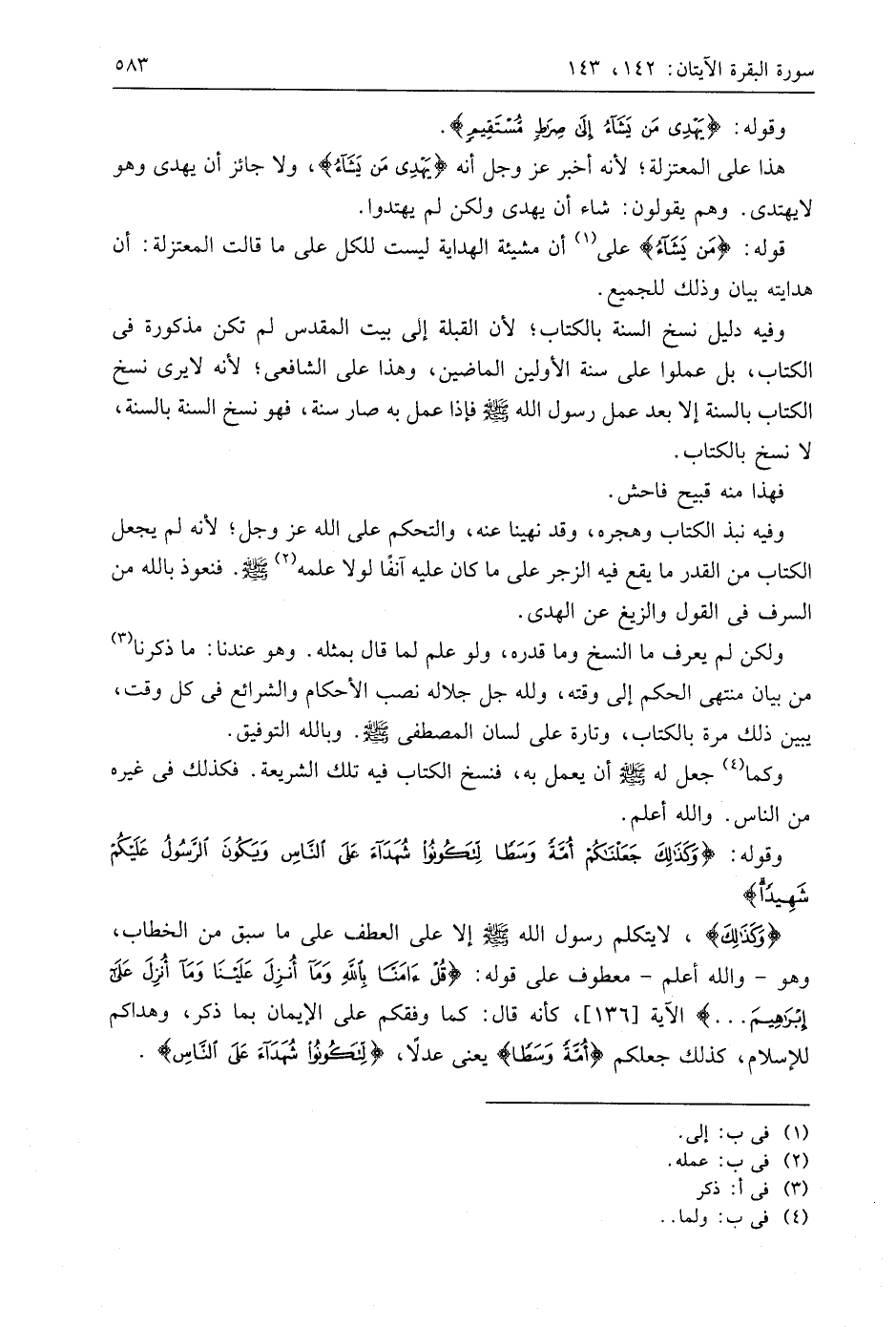 ولكن لم يعرف ما النسخ وما قدره، ولو علم لما قال بمثله. وهو عندنا: ما ذكرنا من بيان منتهى الحكم إلى وقته، ولله جل جلاله نصب الأحكام والشرائع في كل وقت، يبين ذلك مرة بالكتاب، وتارة على لسان المصطفى - صَلَّى اللَّهُ عَلَيهِ وَسَلَّمَ -. وباللَّه التوفيق.