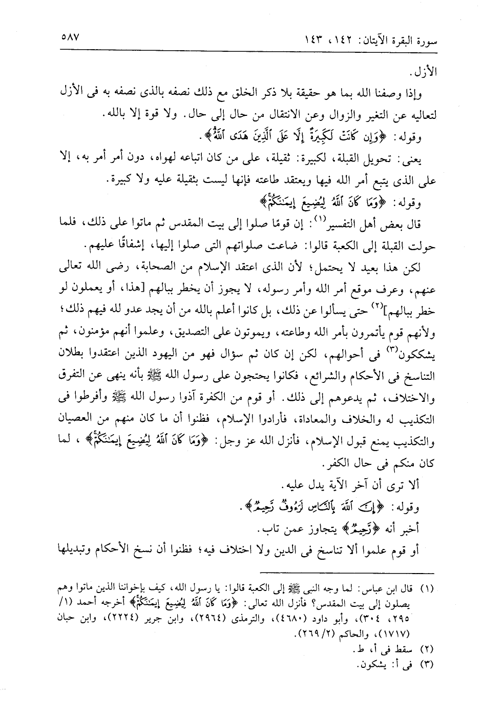 وقوله: (وَإِنْ كَانَتْ لَكَبِيرَةً إِلَّا عَلَى الَّذِينَ هَدَى اللَّهُ).