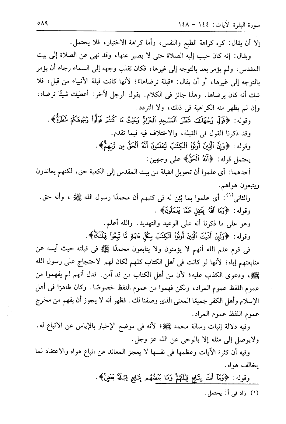 (وَمَا أَنْتَ بِتَابِعٍ قِبْلَتَهُمْ وَمَا بَعْضُهُمْ بِتَابِعٍ قِبْلَةَ بَعْضٍ).