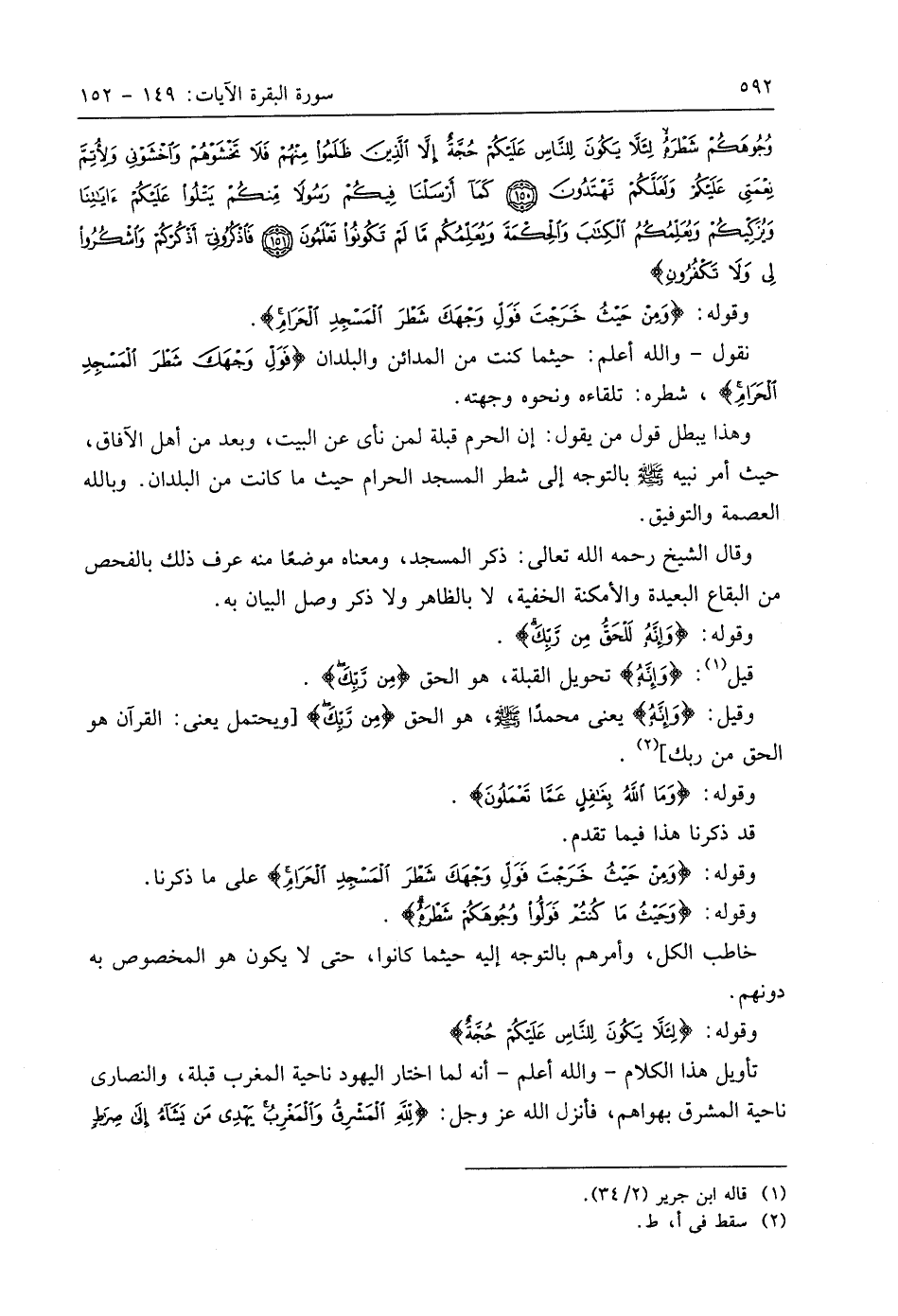 وُجُوهَكُمْ شَطْرَهُ لِئَلَّا يَكُونَ لِلنَّاسِ عَلَيْكُمْ حُجَّةٌ إِلَّا الَّذِينَ ظَلَمُوا مِنْهُمْ فَلَا تَخْشَوْهُمْ وَاخْشَوْنِي وَلِأُتِمَّ نِعْمَتِي عَلَيْكُمْ وَلَعَلَّكُمْ تَهْتَدُونَ (150) كَمَا أَرْسَلْنَا فِيكُمْ رَسُولًا مِنْكُمْ يَتْلُو عَلَيْكُمْ آيَاتِنَا وَيُزَكِّيكُمْ وَيُعَلِّمُكُمُ الْكِتَابَ وَالْحِكْمَةَ وَيُعَلِّمُكُمْ مَا لَمْ تَكُونُوا تَعْلَمُونَ (151) فَاذْكُرُونِي أَذْكُرْكُمْ وَاشْكُرُوا لِي وَلَا تَكْفُرُونِ (152)