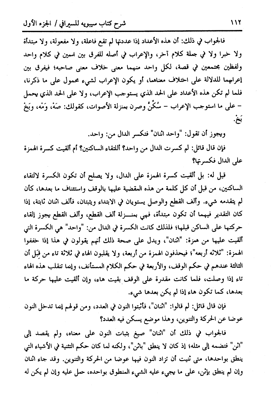 فإن قال قائل: لم قالوا: " اثنان "، فأثبتوا النون في العدد، ومن قولهم إنما تدخل النون عوضا عن الحركة والتنوين، وهذا موضع يسكن فيه العدد؟
