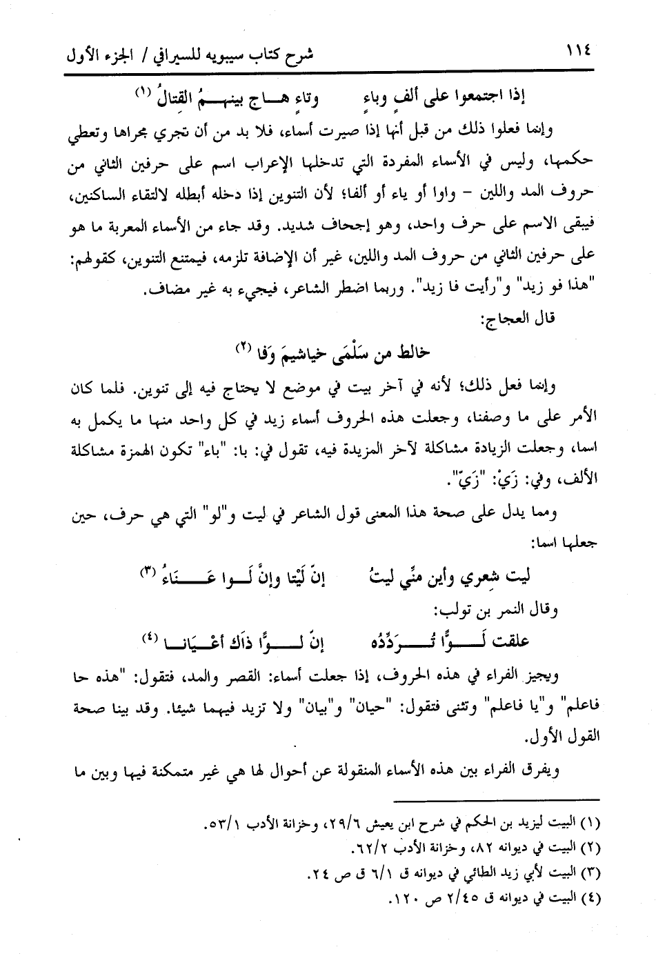 وإنما فعل ذلك؛ لأنه في آخر بيت في موضع لا يحتاج فيه إلى تنوين. فلما كان الأمر على ما وصفنا، وجعلت هذه الحروف أسماء زيد في كل واحد منها ما يكمل به اسما، وجعلت الزيادة مشاكلة لآخر المزيدة فيه، تقول في: با: " باء " تكون الهمزة مشاكلة الألف، وفي: زي: " زيّ ".