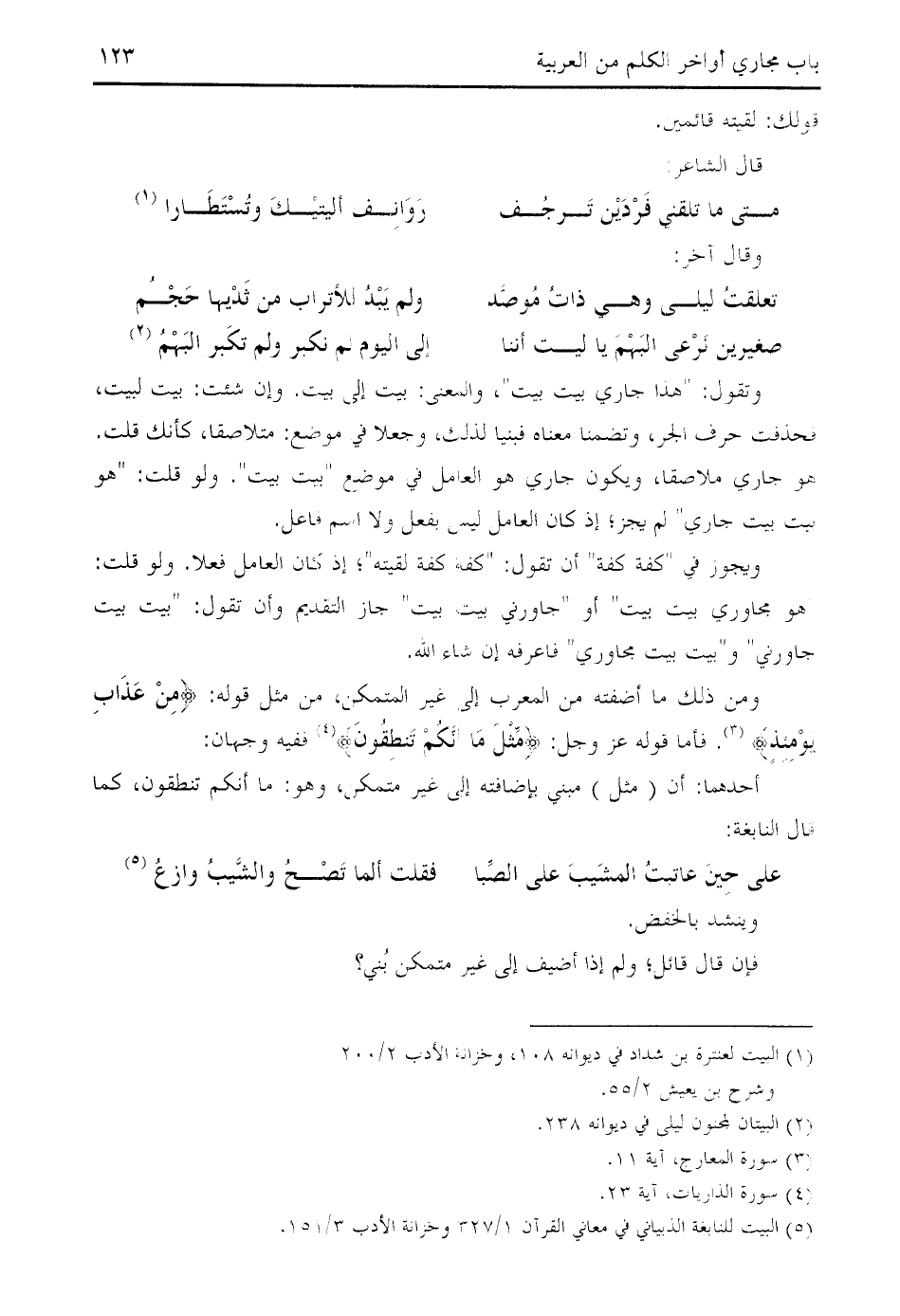 (¬5) البيت للنابغة الذبياني في معاني القرآن 1/ 327 وخزانة الأدب 3/ 151.