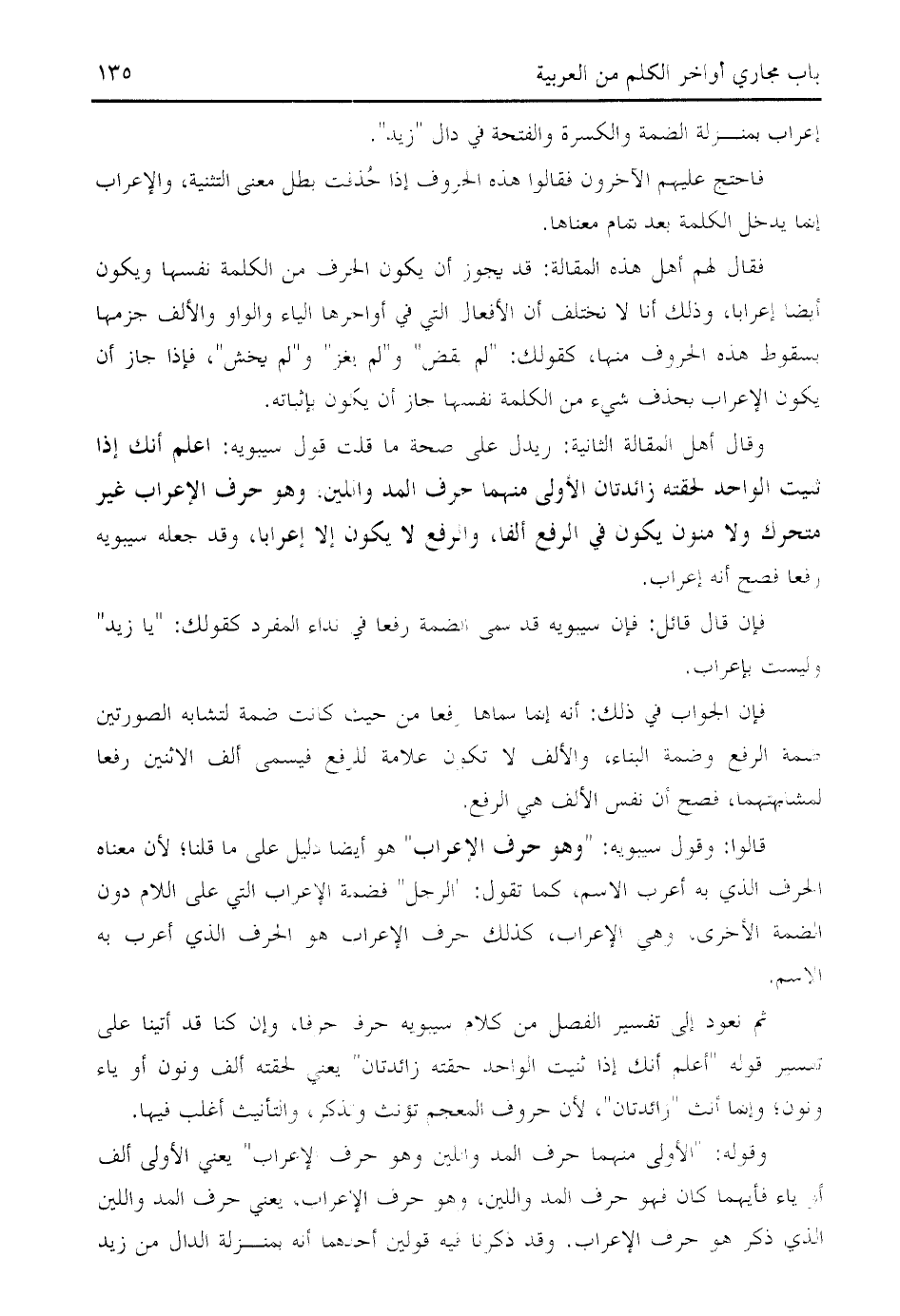 قالوا: وقول سيبويه: " وهو حرف الإعراب " هو أيضا دليل على ما قلنا؛ لأن معناه الحرف الذي به أعرب الاسم، كما تقول: " الرجل " فضمة الإعراب التي على اللام دون الضمة الأخرى، وهي الإعراب، كذلك حرف الإعراب هو الحرف الذي أعرب به الاسم.