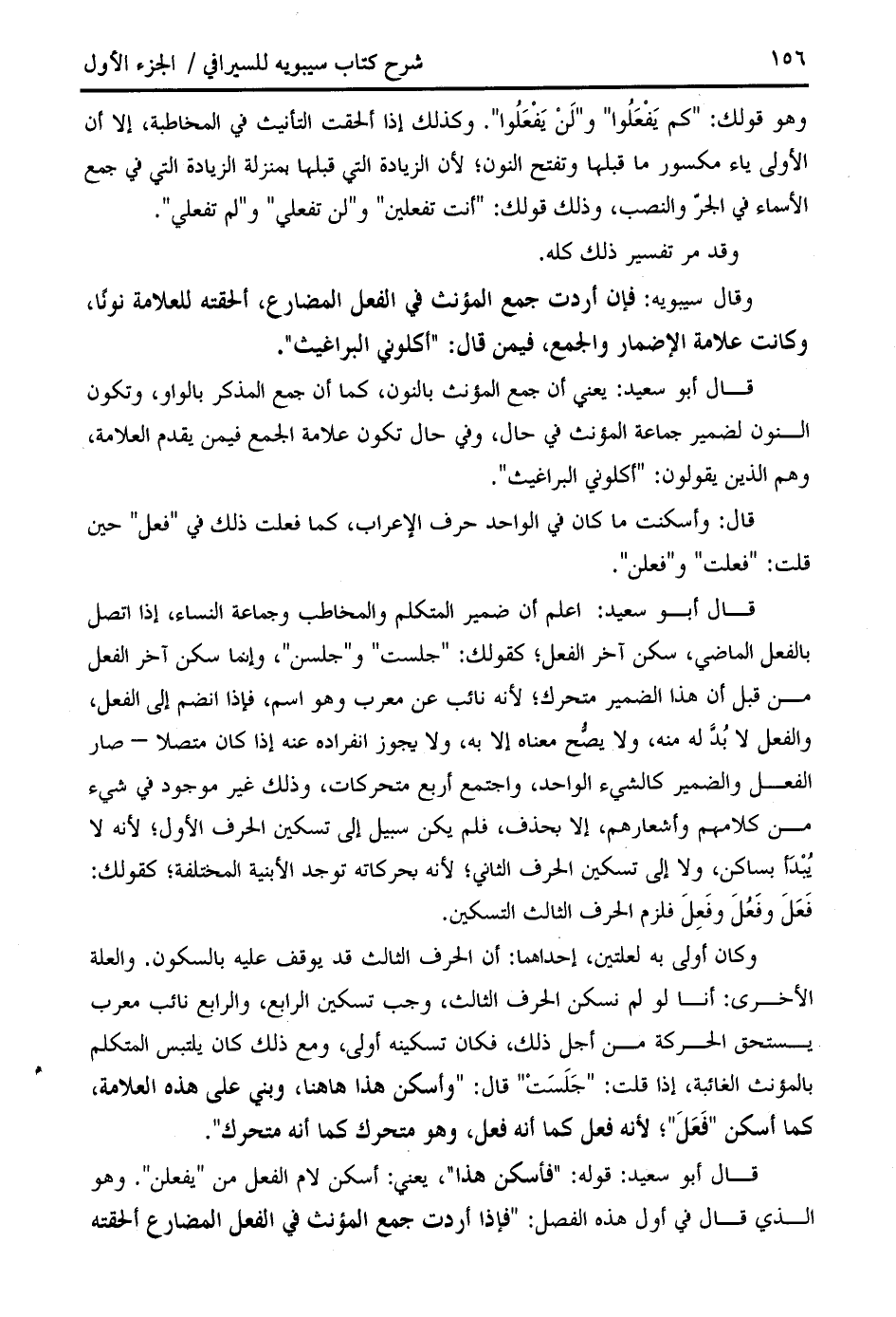 قال أبو سعيد: قوله: " فأسكن هذا "، يعني: أسكن لام الفعل من " يفعلن ". وهو الذي قال في أول هذه الفصل: " فإذا أردت جمع المؤنث في الفعل المضارع ألحقته