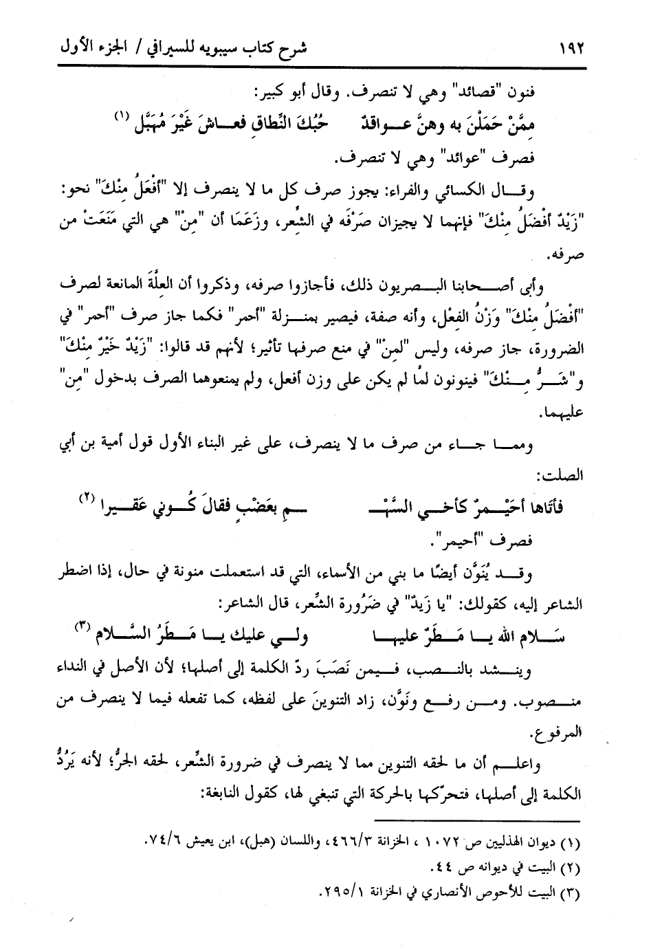 واعلم أن ما لحقه التنوين مما لا ينصرف في ضرورة الشّعر، لحقه الجرّ؛ لأنه يردّ الكلمة إلى أصلها، فتحرّكها بالحركة التي تنبغي لها، كقول النابغة: