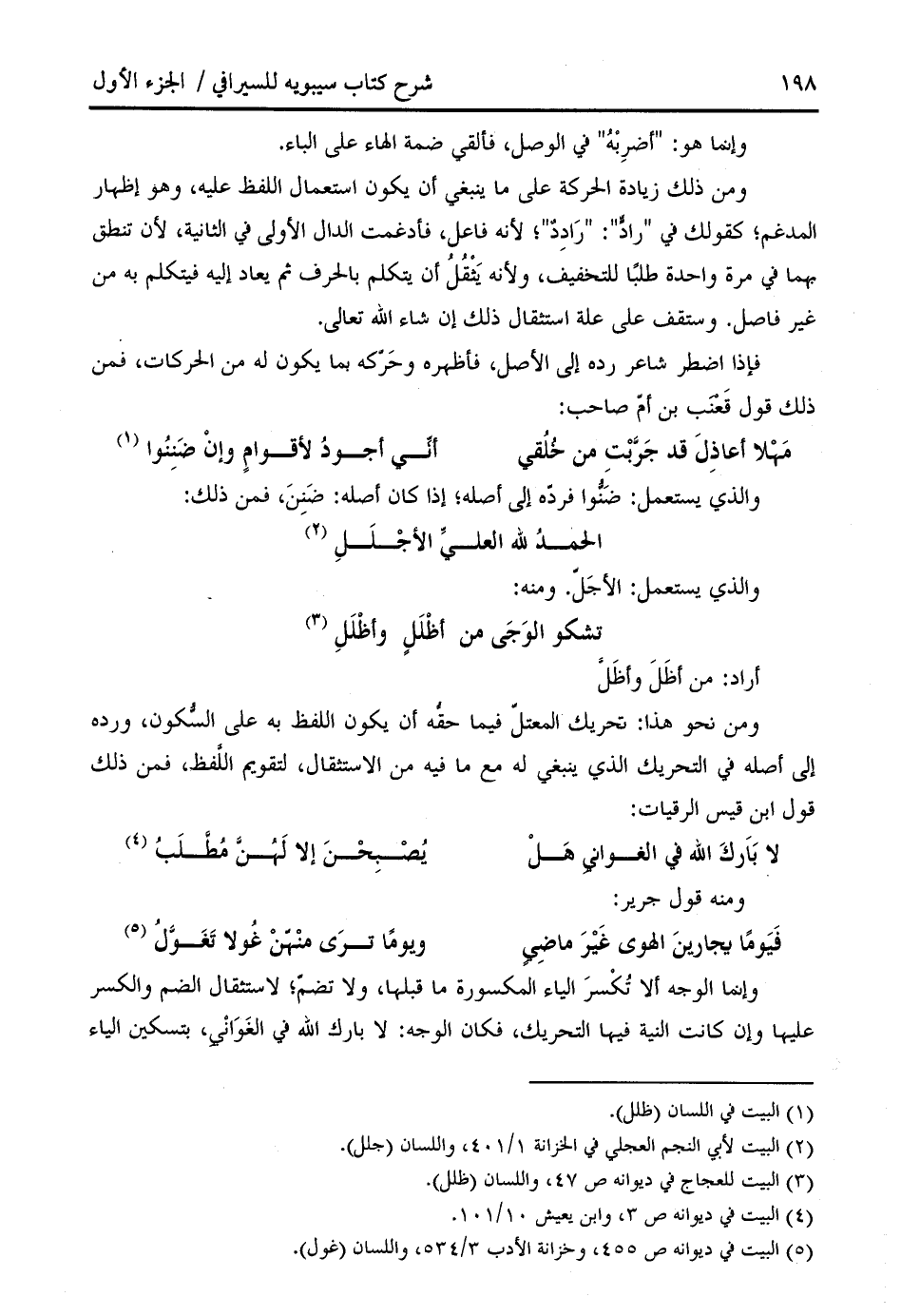 فإذا اضطر شاعر رده إلى الأصل، فأظهره وحرّكه بما يكون له من الحركات، فمن ذلك قول قعنب بن أمّ صاحب: