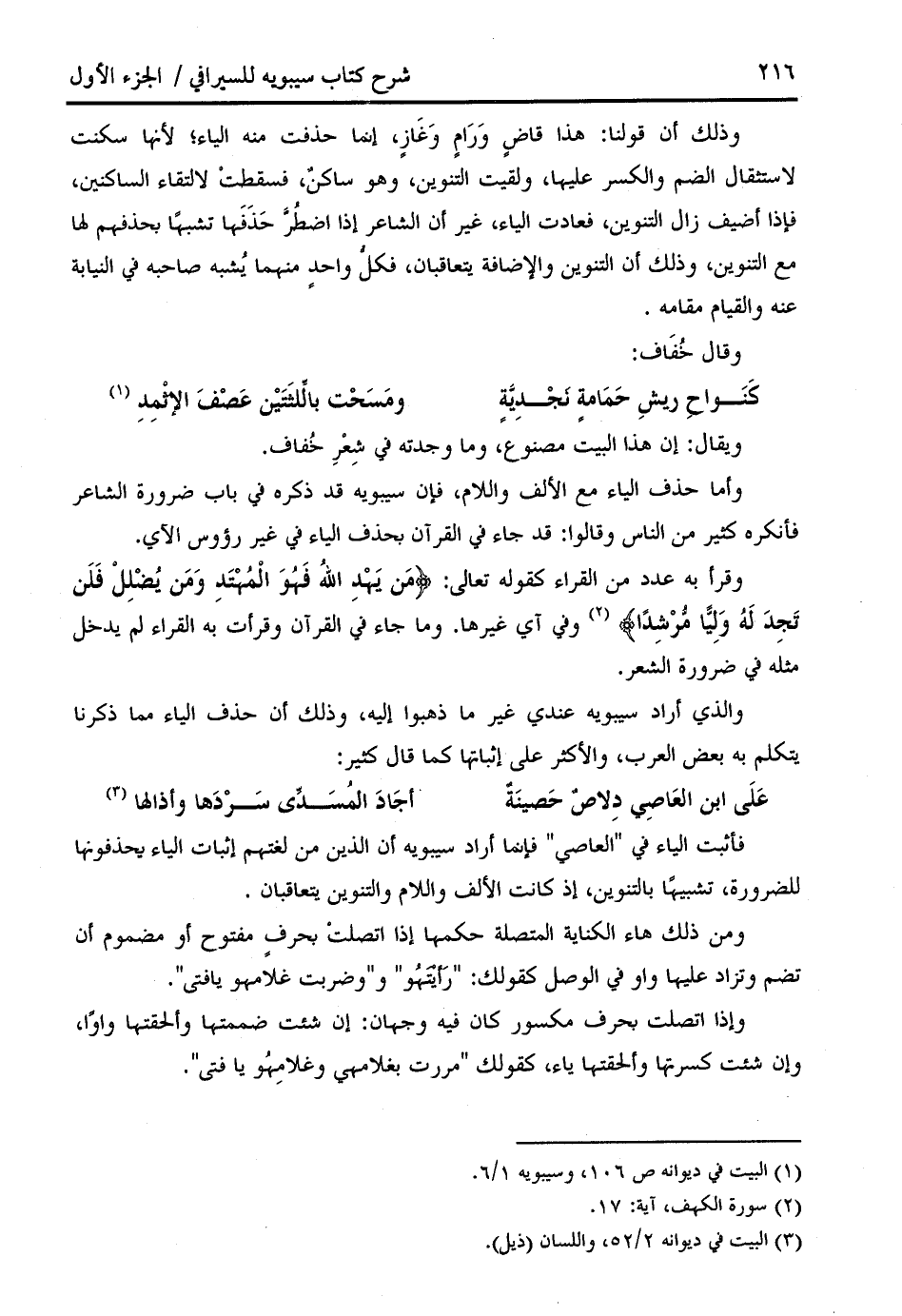 فأثبت الياء في " العاصي " فإنما أراد سيبويه أن الذين من لغتهم إثبات الياء يحذفونها للضرورة، تشبيها بالتنوين، إذ كانت الألف واللام والتنوين يتعاقبان.