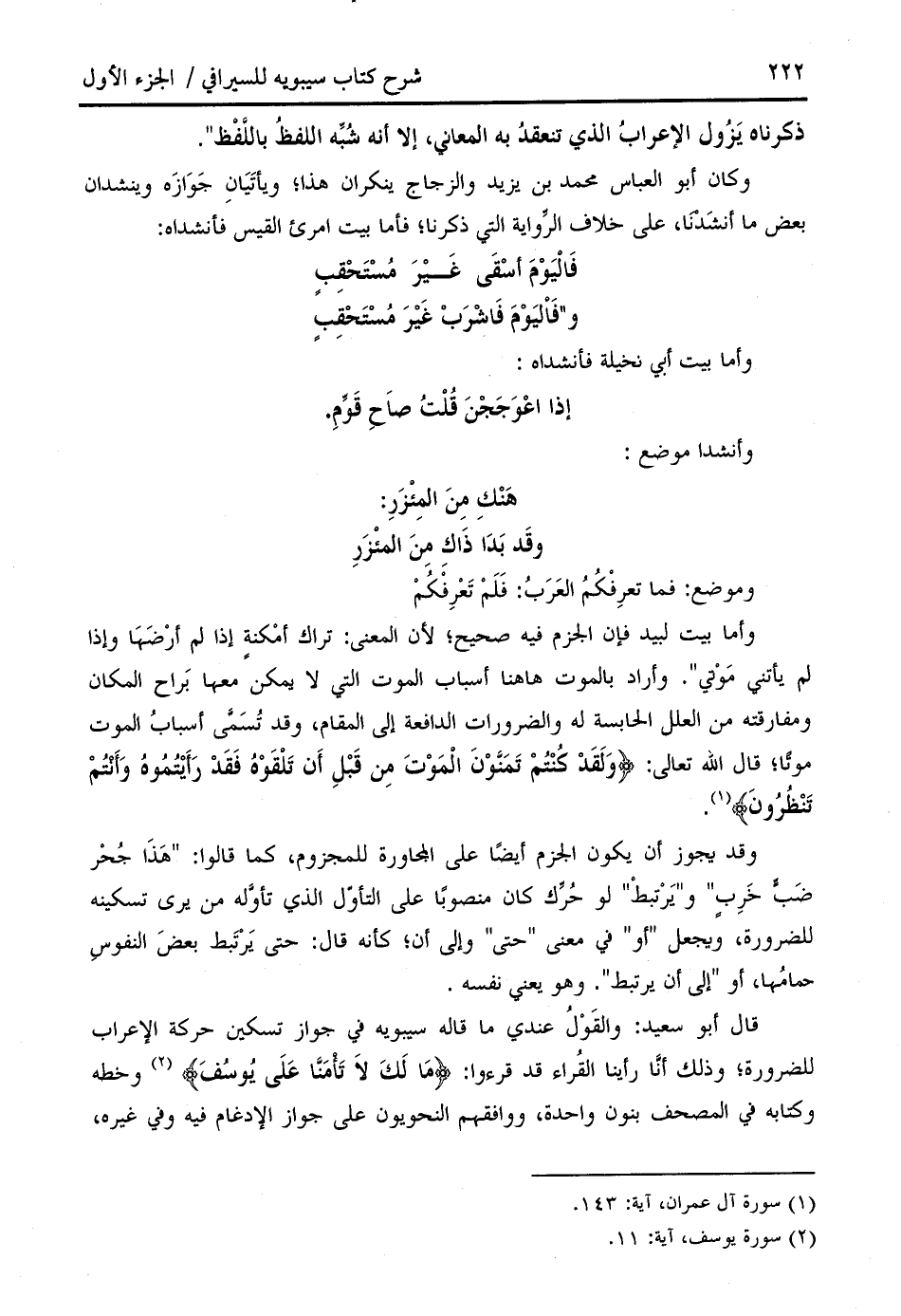 وكان أبو العباس محمد بن يزيد والزجاج ينكران هذا؛ ويأتيان جوازه وينشدان بعض ما أنشدنا، على خلاف الرّواية التي ذكرنا؛ فأما بيت امرئ القيس فأنشداه: