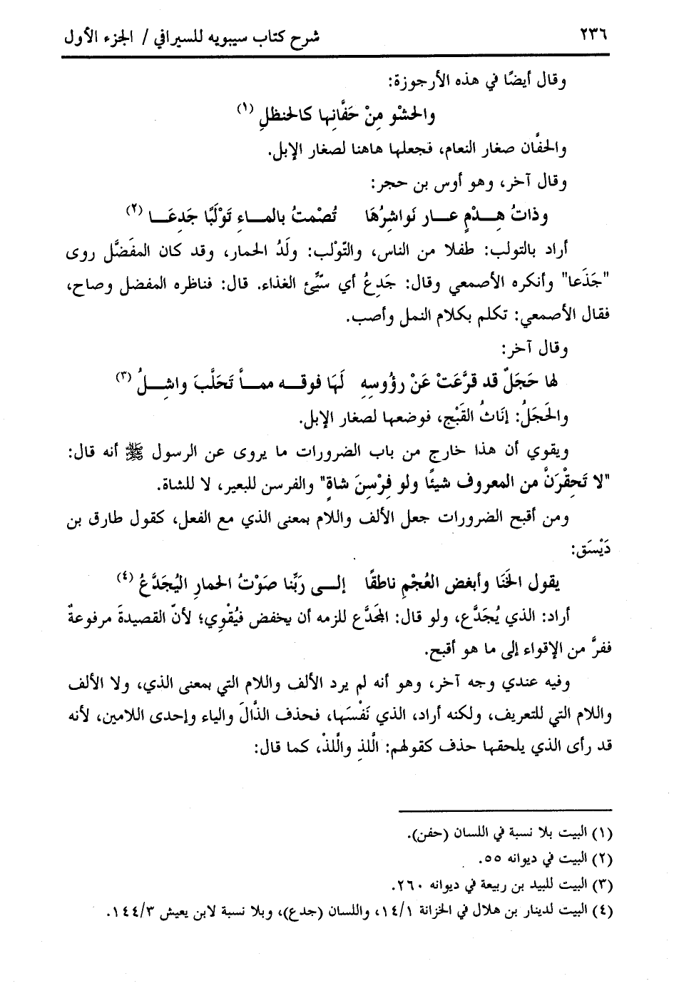 ومن أقبح الضرورات جعل الألف واللام بمعنى الذي مع الفعل، كقول طارق بن ديسق: