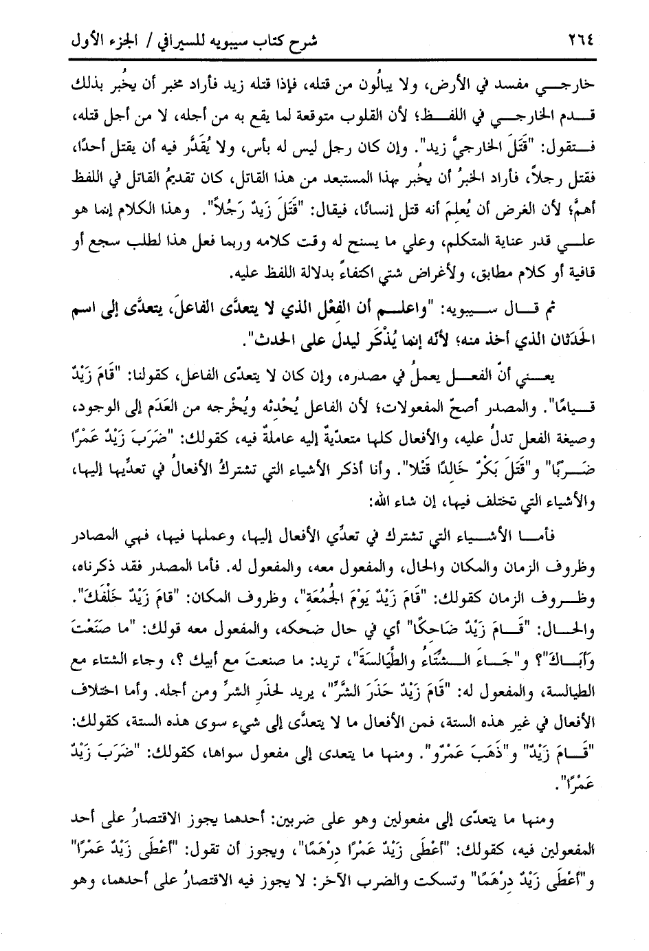 " قام زيد " و " ذهب عمرو ". ومنها ما يتعدى إلى مفعول سواها، كقولك: " ضرب زيد عمرا ".