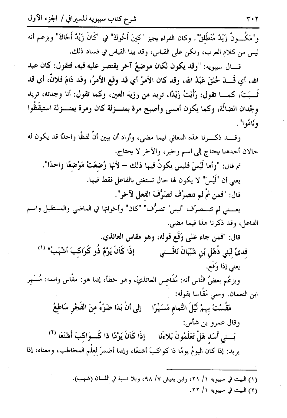 قال سيبويه: " وقد يكون لكان موضع آخر يقتصر عليه فيه، فتقول: كان عبد الله، أي قد خلق عبد الله، وقد كان الأمر أي قد وقع الأمر، وقد دام فلان، أي قد ثبت، كما تقول: رأيت زيدا، تريد من رؤية العين، وكما تقول: أنا وجدته، تريد وجدان الضالّة، وكما يكون أمسى وأصبح مرة بمنزلة كان ومرة بمنزلة استيقظوا وناموا ".