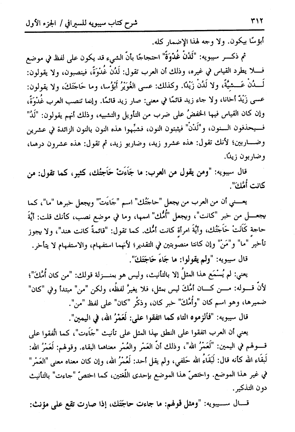 قال سيبويه: " ومثل قولهم: ما جاءت حاجتك، إذا صارت تقع على مؤنث: