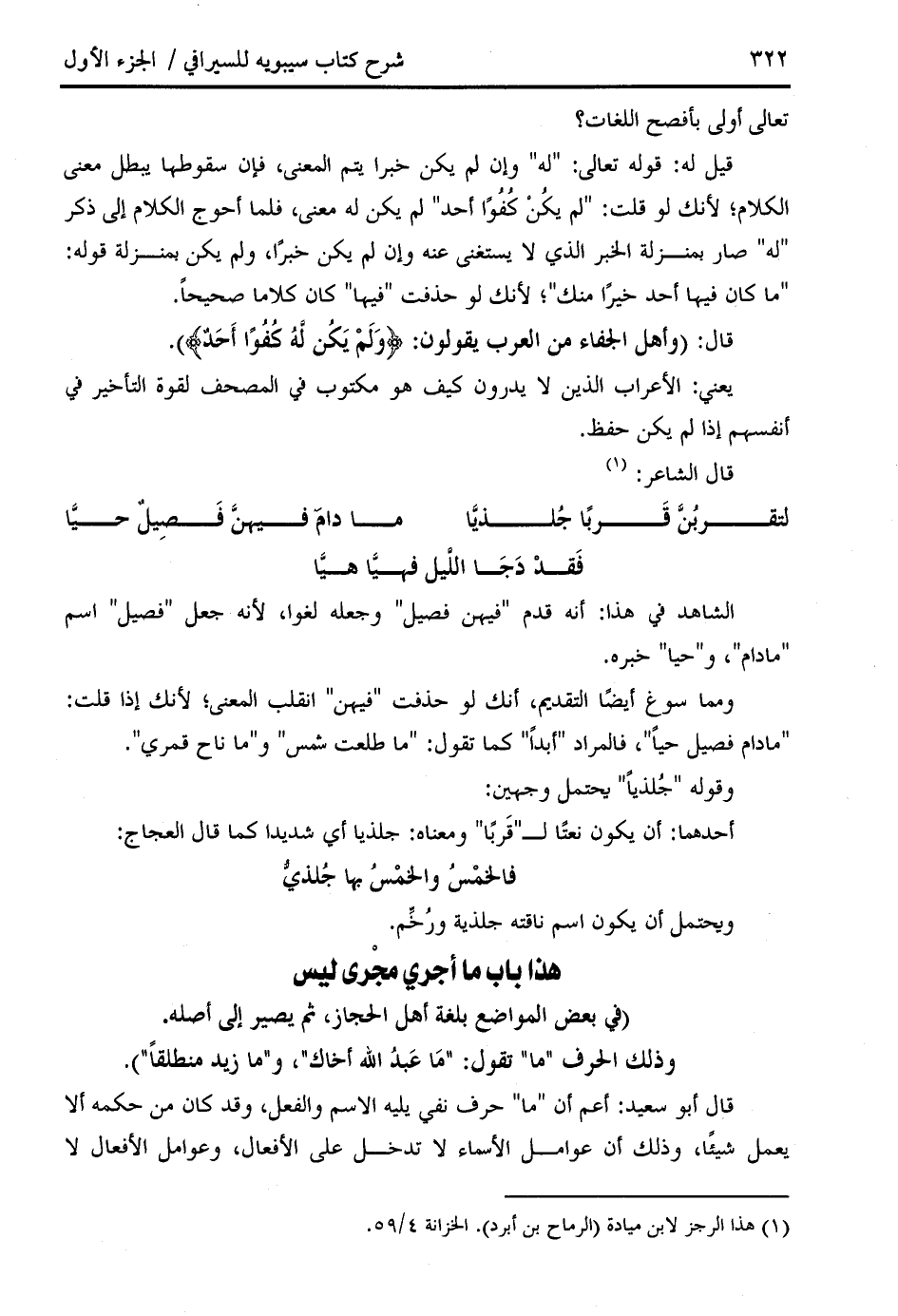 قال أبو سعيد: أعم أن " ما " حرف نفي يليه الاسم والفعل، وقد كان من حكمه ألا يعمل شيئا، وذلك أن عوامل الأسماء لا تدخل على الأفعال، وعوامل الأفعال لا