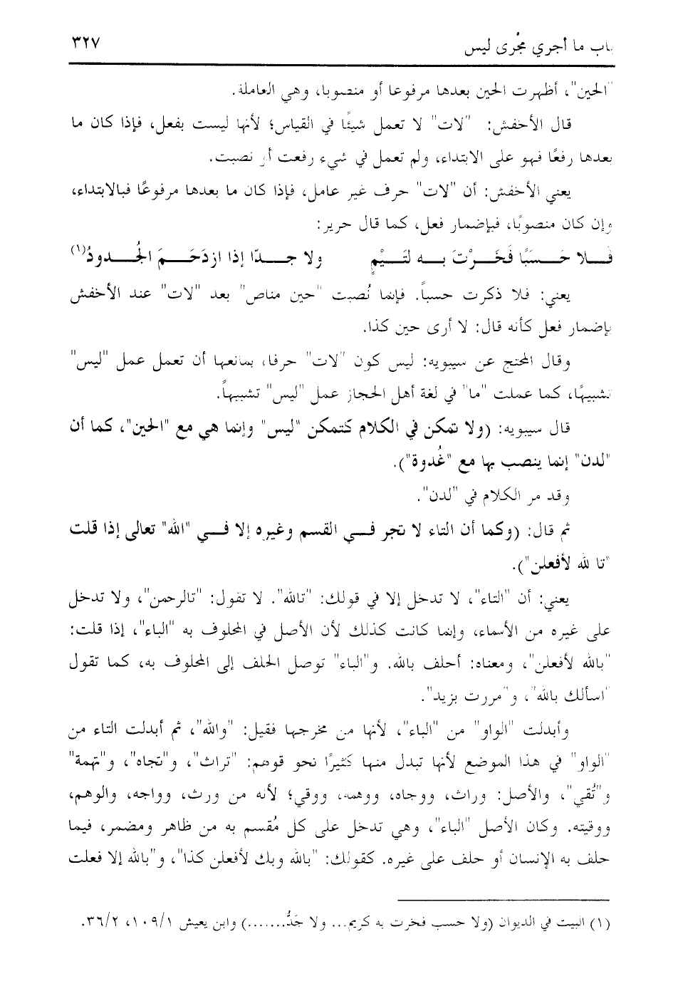 وقال المحتج عن سيبويه: ليس كون " لات " حرفا، بمانعها أن تعمل عمل " ليس " تشبيها، كما عملت " ما " في لغة أهل الحجاز عمل " ليس " تشبيها.