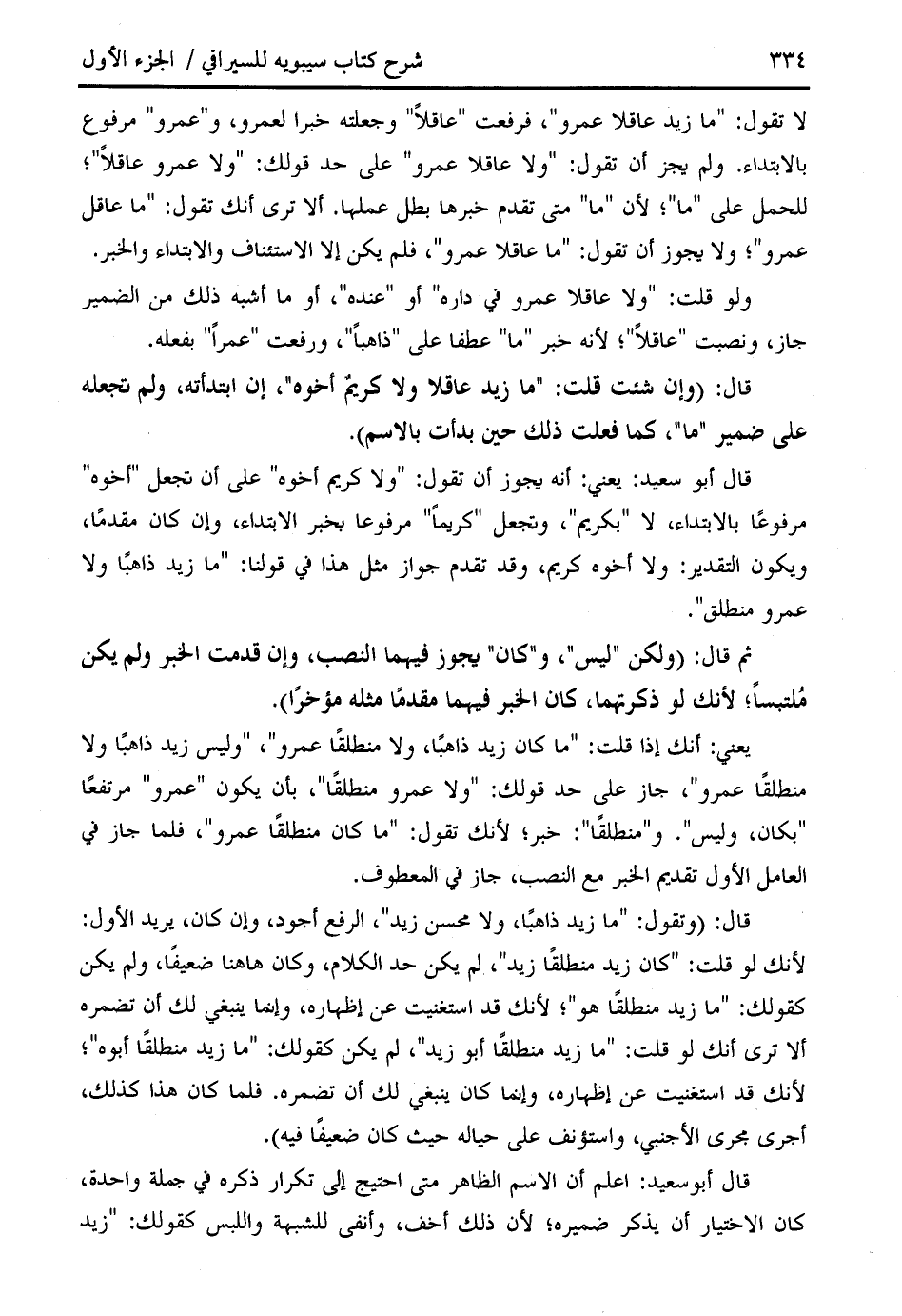 قال: (وإن شئت قلت: " ما زيد عاقلا ولا كريم أخوه "، إن ابتدأته، ولم تجعله على ضمير " ما "، كما فعلت ذلك حين بدأت بالاسم).