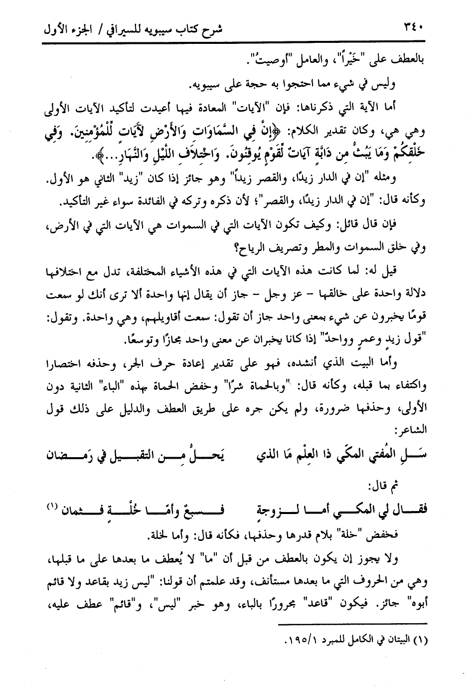وأما البيت الذي أنشده، فهو على تقدير إعادة حرف الجر، وحذفه اختصارا واكتفاء بما قبله، وكأنه قال: " وبالحماة شرا " وخفض الحماة بهذه " الباء " الثانية دون الأولى، وحذفها ضرورة، ولم يكن جره على طريق العطف والدليل على ذلك قول الشاعر: