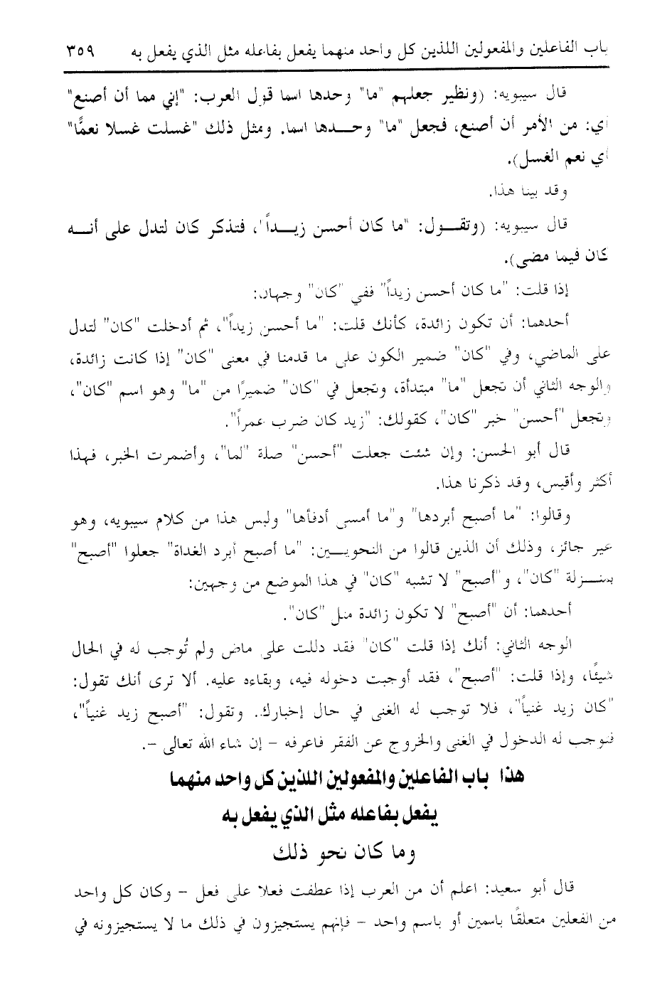 " كان زيد غنيا "، فلا توجب له الغنى في حال إخبارك. وتقول: " أصبح زيد غنيا "، فتوجب له الدخول في الغنى والخروج عن الفقر فاعرفه- إن شاء الله تعالى-.