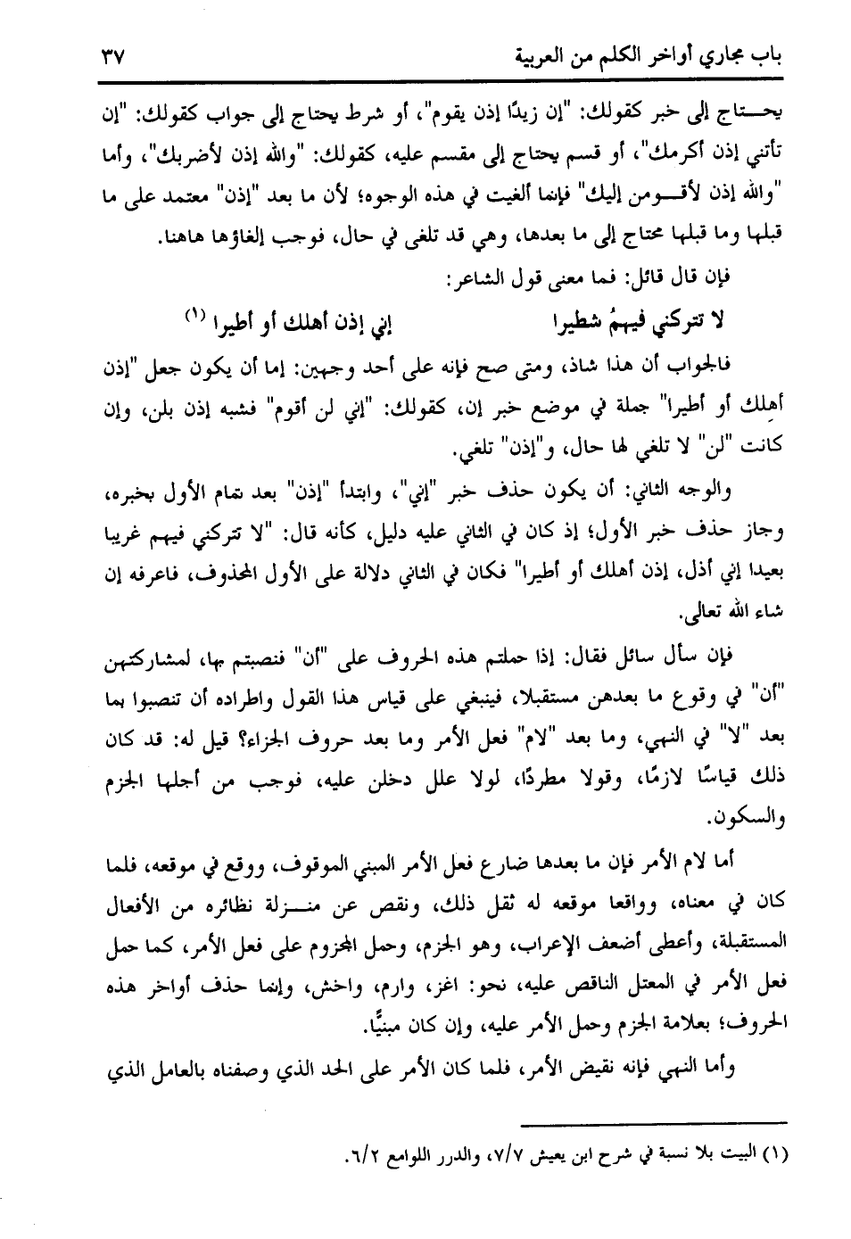 فالجواب أن هذا شاذ، ومتى صح فإنه على أحد وجهين: إما أن يكون جعل " إذن أهلك أو أطيرا " جملة في موضع خبر إن، كقولك: " إني لن أقوم " فشبه إذن بلن، وإن كانت " لن " لا تلغي لها حال، و " إذن " تلغي.