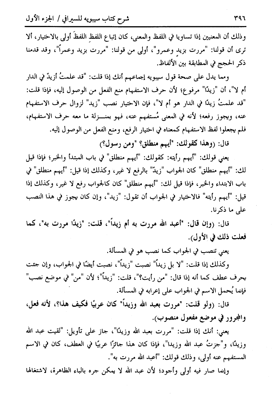 وكذلك إذا قلت: " لا بل زيدا " نصبت " زيدا "، نصبت أيضا في الجواب، وإن جئت بحرف عطف كما أنه إذا قال: " من رأيت؟ "، قلت: " زيدا "؛ لأن " من " في موضع نصب " فإنما يحمل الاسم في الجواب على إعرابه في المسألة.