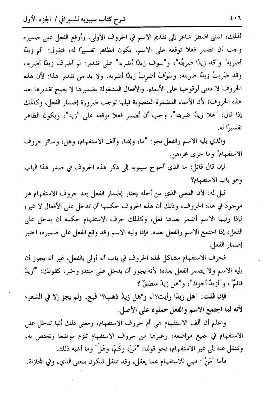 فحرف الاستفهام مشاكل لهذه الحروف في باب أنه أولى بالفعل، غير أنه يجوز أن يليه الاسم ولا يضمر الفعل بعده؛ لأنه يجوز أن يدخل على مبتدإ وخبر، كقولك: " أزيد قائم "، و " أزيد أخوك "، و " هل زيد منطلق "؟
