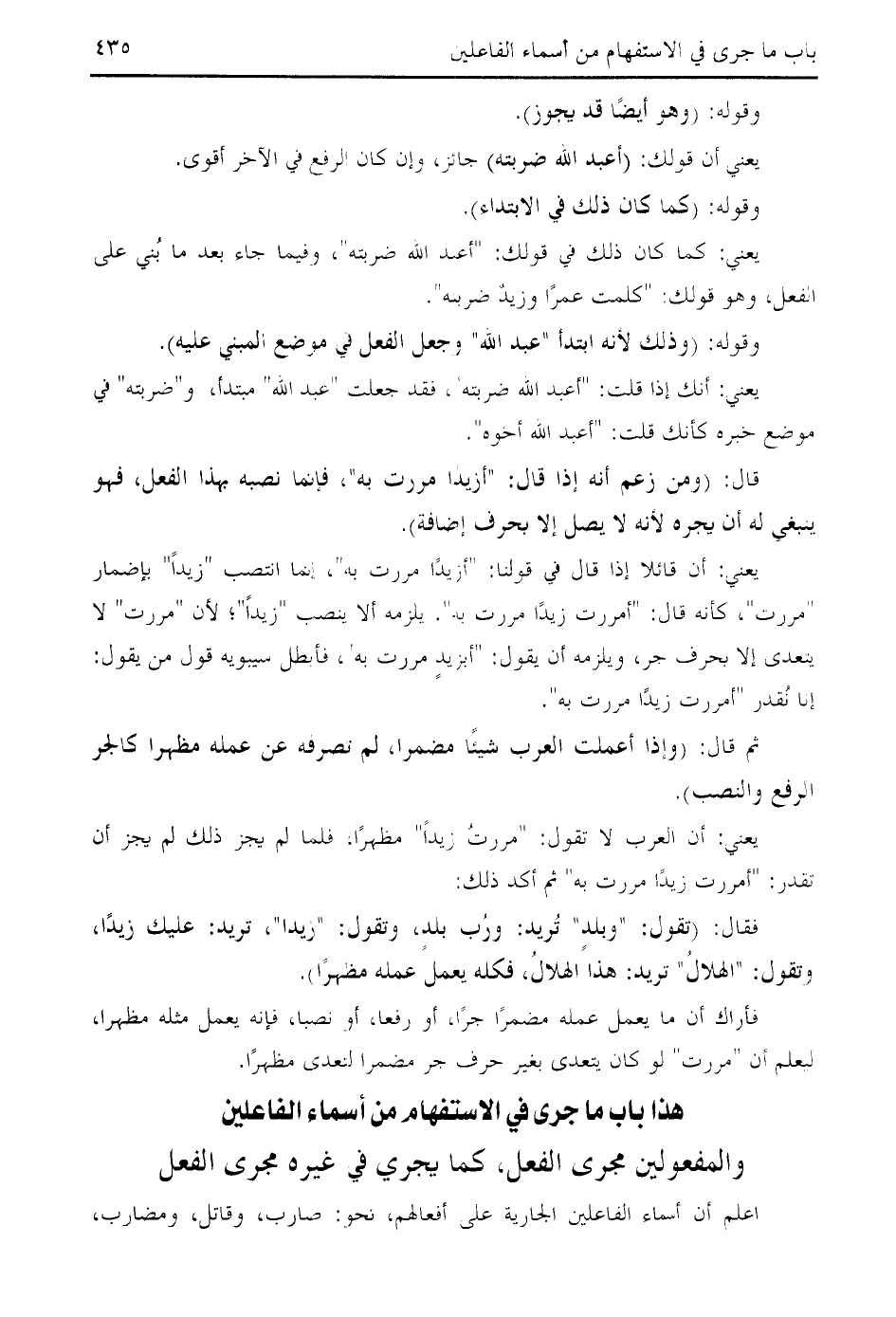هذا باب ما جرى في الاستفهام من أسماء الفاعلين والمفعولين مجرى الفعل، كما يجري في غيره مجرى الفعل