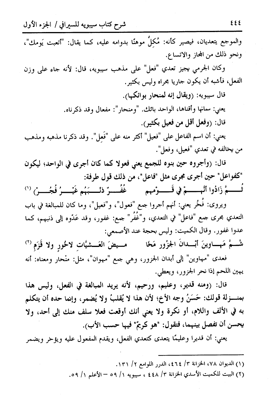 (¬2) البيت للكميت الأسدي الخزانة 3/ 448، سيبويه 1/ 59 - الأعلم 1/ 59.