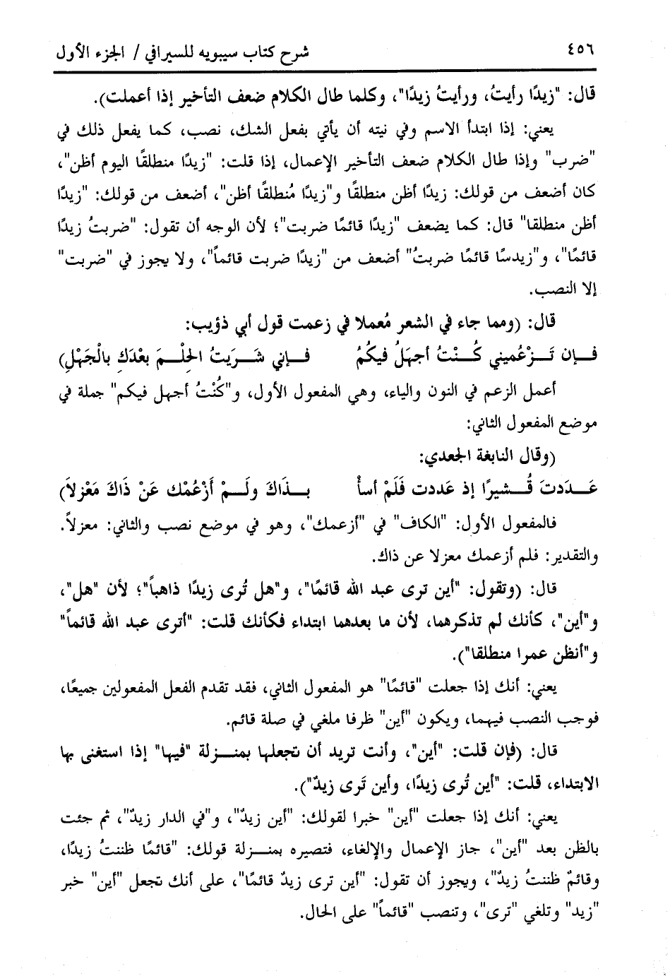 قال: " زيدا رأيت، ورأيت زيدا "، وكلما طال الكلام ضعف التأخير إذا أعملت).