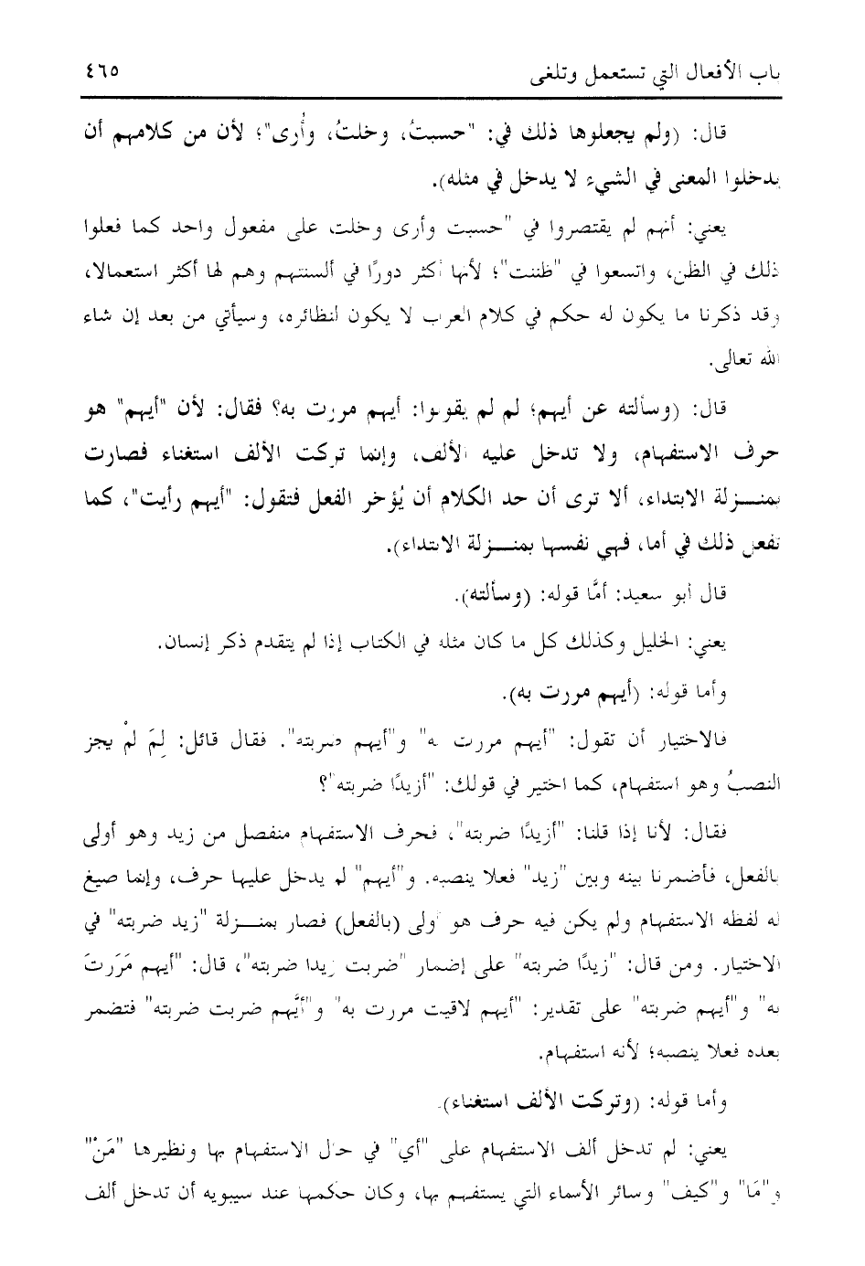 قال: (وسألته عن أيهم؛ لم لم يقولوا: أيهم مررت به؟ فقال: لأن " أيهم " هو حرف الاستفهام، ولا تدخل عليه الألف، وإنما تركت الألف استغناء فصارت بمنزلة الابتداء، ألا ترى أن حد الكلام أن يؤخر الفعل فتقول: " أيهم رأيت "، كما تفعل ذلك في أما، فهي نفسها بمنزلة الابتداء).