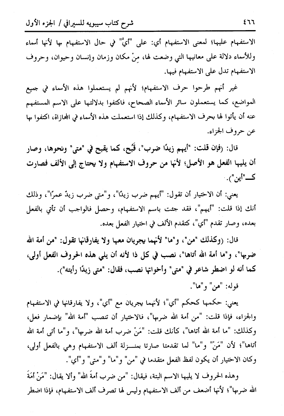 وهذه الحروف لا يليها الاسم البتة، فيقال: " من ضرب أمة الله " وألا يقال: " من أمة الله ضربها "؛ لأنها أضعف من ألف الاستفهام وليس لها تصرف ألف الاستفهام، فإذا اضطر