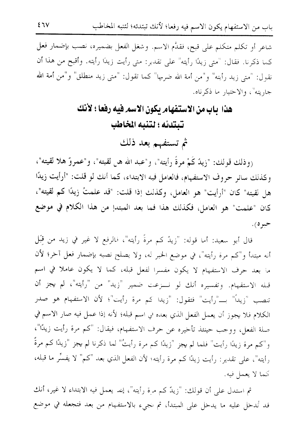 (وذلك قولك: " زيد كم مرة رأيته "، و " عبد الله هل لقيته "، و " عمرو هلا لقيته "، وكذلك سائر حروف الاستفهام، فالعامل فيه الابتداء، كما أنك لو قلت: " أرأيت زيدا هل لقيته " كان " أرأيت " هو العامل، وكذلك إذا قلت: " قد علمت