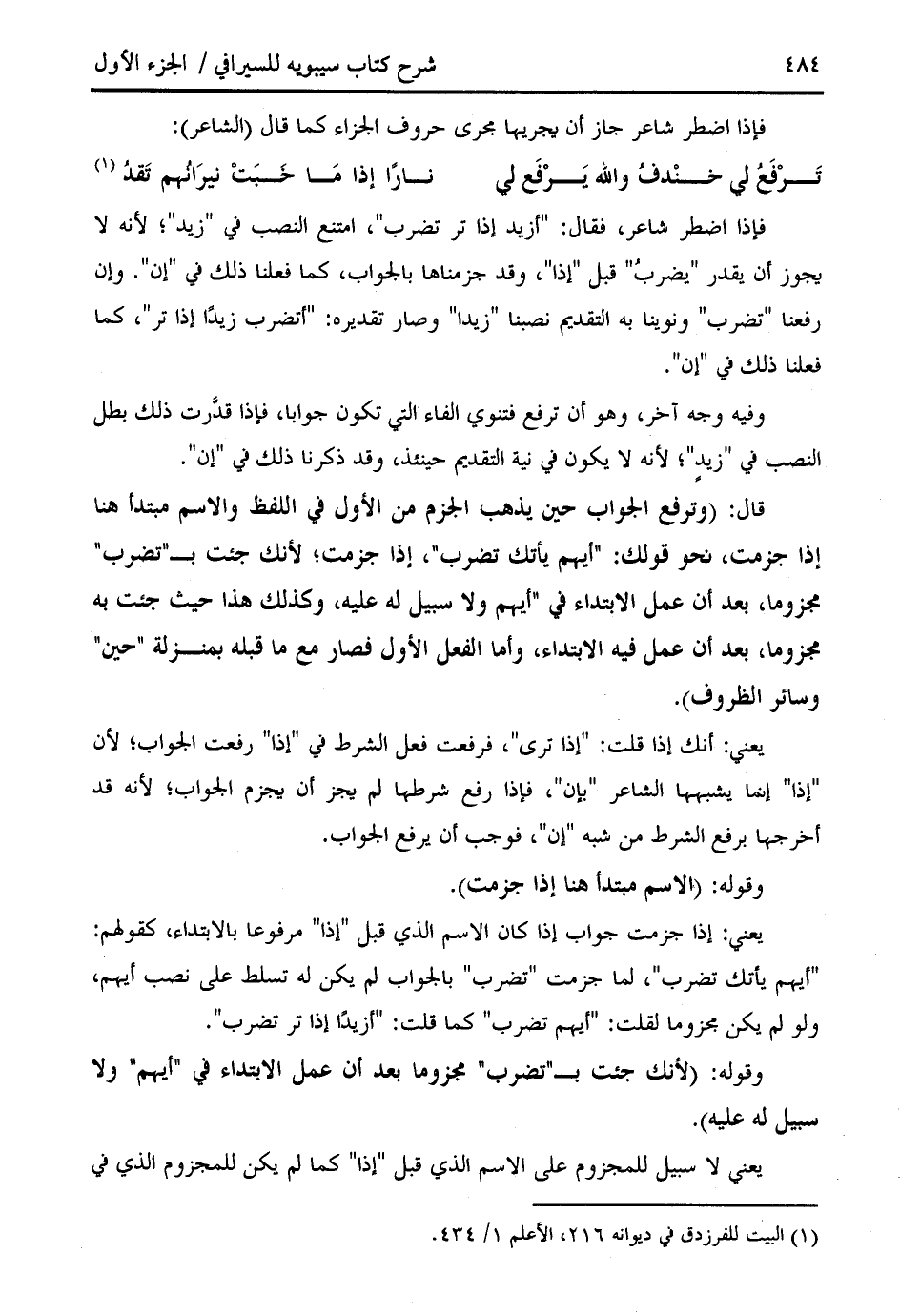 (¬1) البيت للفرزدق في ديوانه 216، الأعلم 1/ 434.