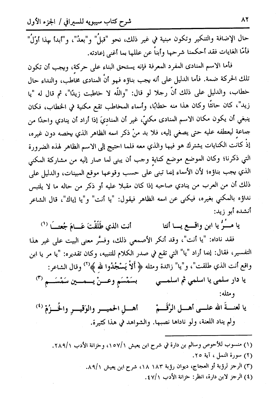 فقد ناداه: " يا أنت "، وقد أنكر الأصمعي ذلك، وفسّر معنى البيت على غير هذا التفسير، فقال: إنما أراد " يا " التي تقع في صدر الكلام للتنبيه، وكان تقديره: " يا مر يا ابن واقع أنت الذي طلقت "، و " يا " زائدة ومثله أَلَّا يَسْجُدُوا لِلَّهِ (¬2) وقال الشاعر:
