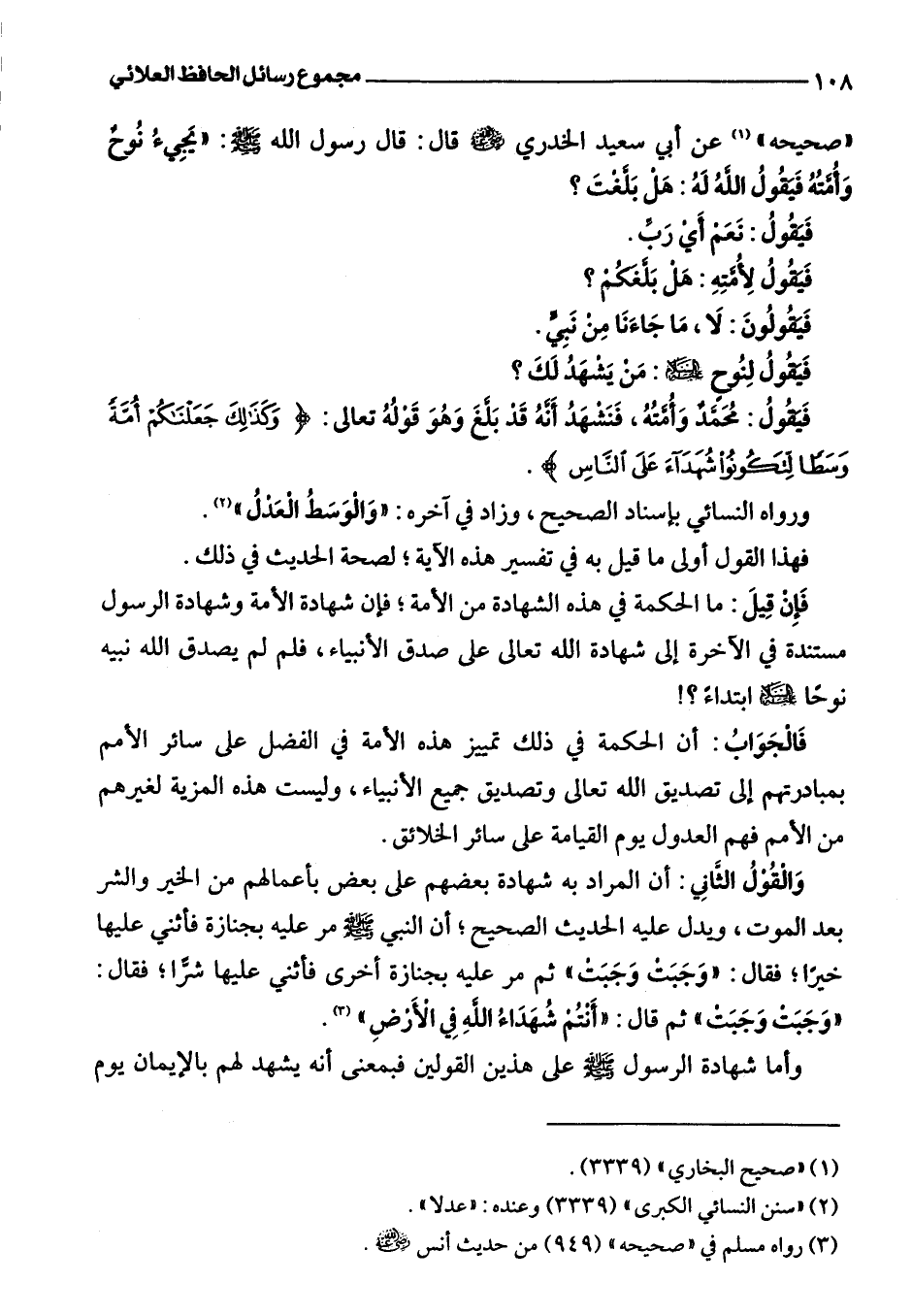"صحيحه" (¬1) عن أبي سعيد الخدري -رضي اللَّه عنه- قال: قال رسول اللَّه -صلى اللَّه عليه وسلم-: "يَجِيءُ نُوحٌ وَأُمَّتُهُ فَيقَولُ اللَّهُ لَهُ: هَل بَلَّغتَ؟