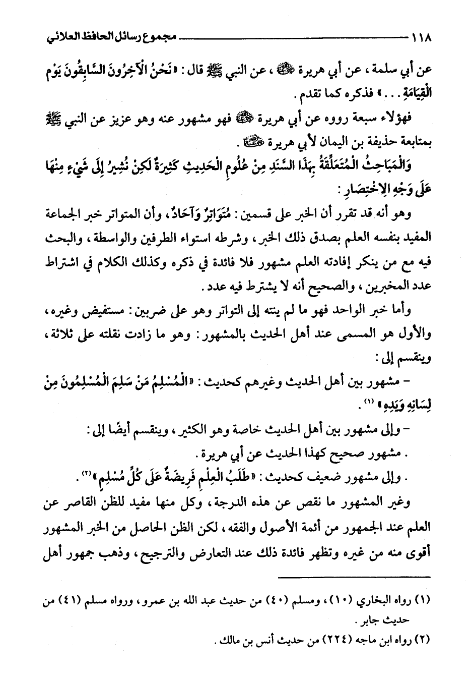 - مشهور بين أهل الحديث وغيرهم كحديث: "الْمُسْلِمُ مَن سَلِمَ المُسْلِمُونَ مِنْ لِسَانِهِ وَيَدِهِ" (¬1).