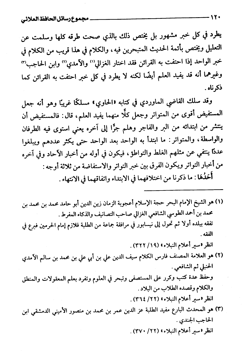 (¬1) هو الشيخ الإمام البحر حجة الإِسلام أعجوبة الزمان زين الدين أبو حامد محمد بن محمد بن محمد بن أحمد الطوسي الشافعي الغزالي صاحب التصانيف والذكاء المفرط.