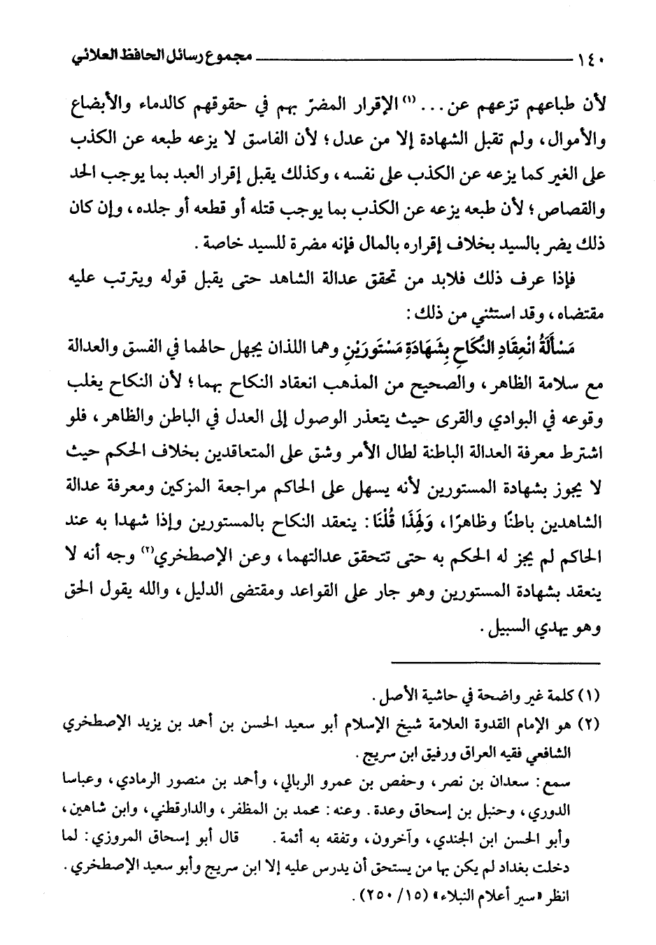 (¬2) هو الإمام القدوة العلامة شيخ الإِسلام أبو سعيد الحسن بن أحمد بن يزيد الإصطخري الشافعي فقيه العراق ورفيق ابن سريج.