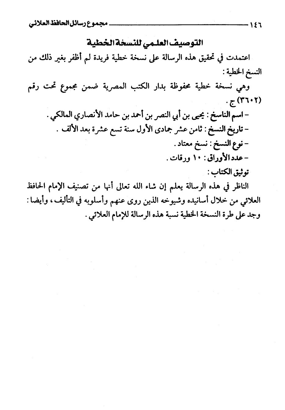 وهي نسخة خطية محفوظة بدار الكتب المصرية ضمن مجموع تحت رقم (3602) ج.