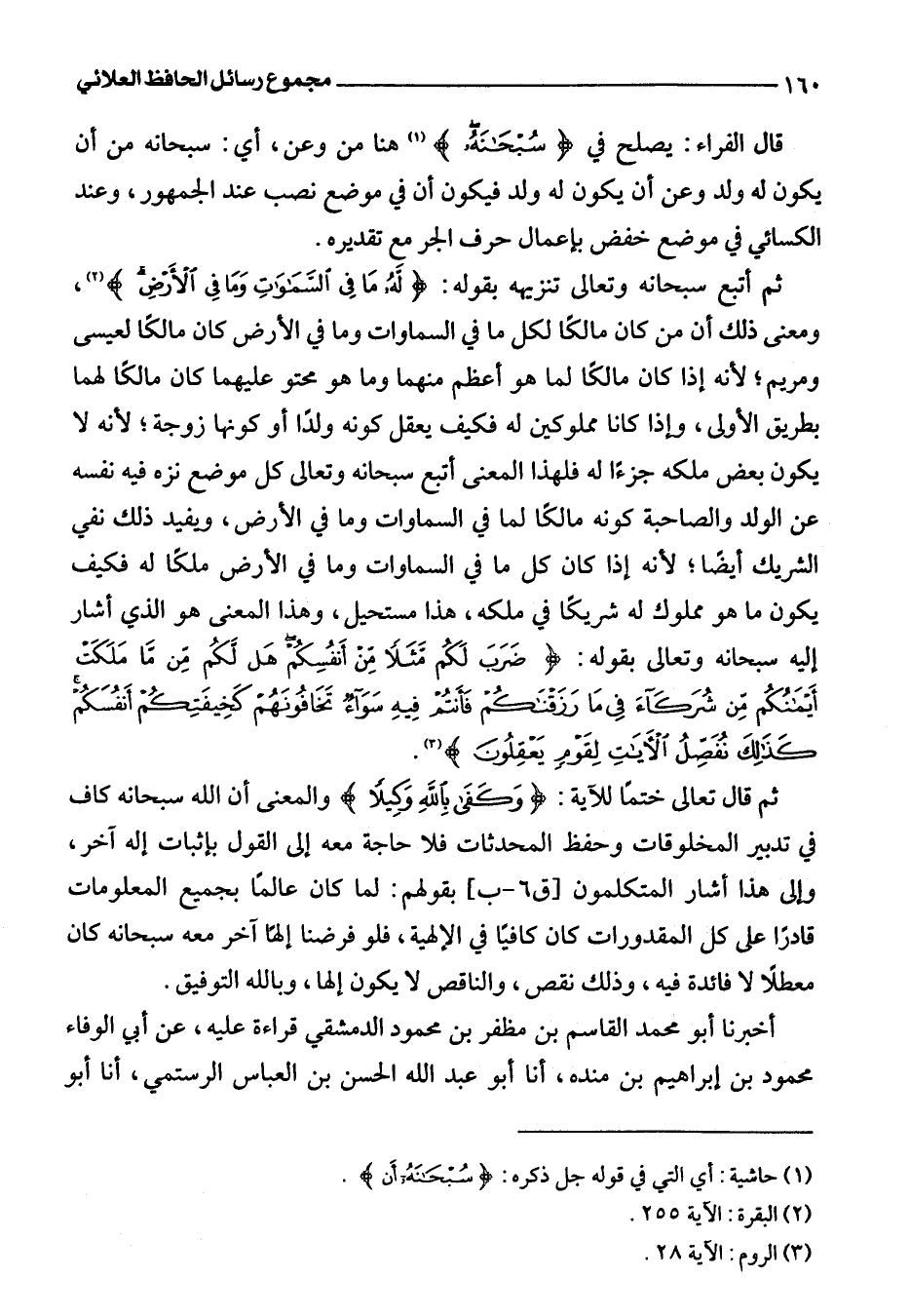 (¬1) حاشية: أي التي في قوله جل ذكره: {سُبْحَانَهُ أَن}.