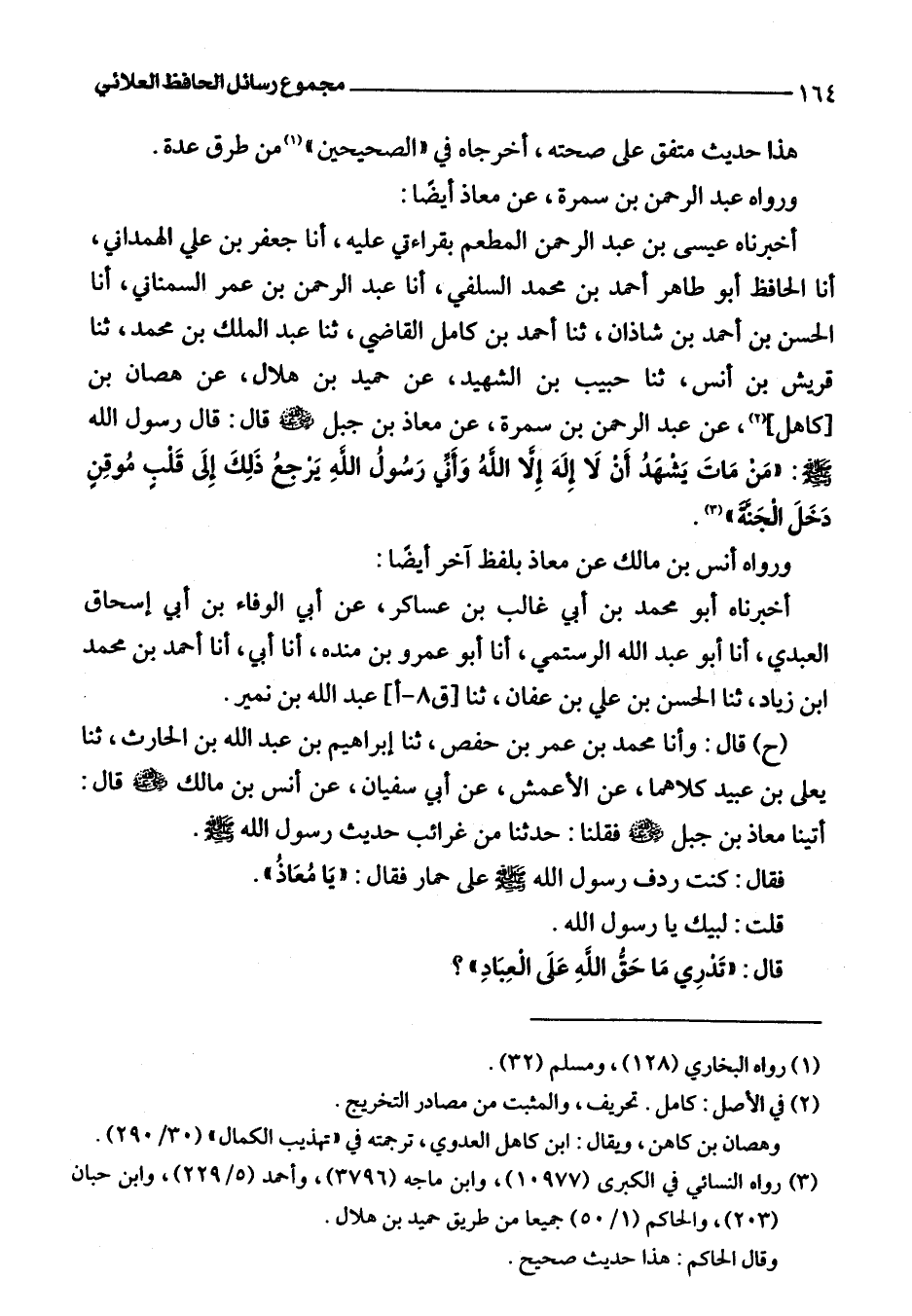 (¬3) رواه النسائي في الكبرى (10977)، وابن ماجه (3796)، وأحمد (5/ 229)، وابن حبان (203)، والحاكم (1/ 50) جميعًا من طريق حميد بن هلال.