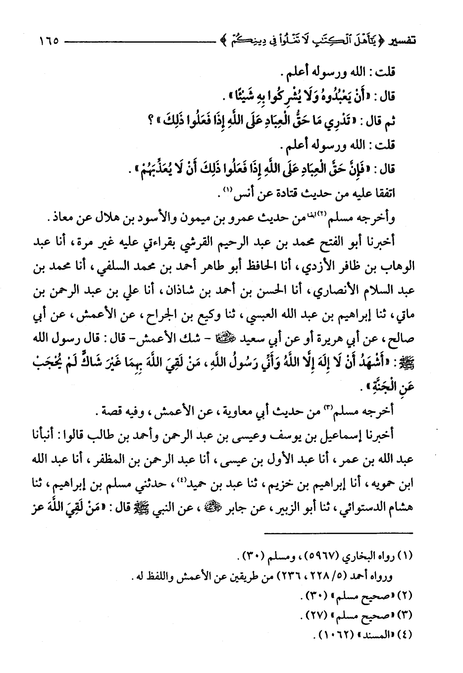 قال: "أَن يَعْبُدُوهُ وَلَا يُشرِكُوا بِهِ شَيْئًا".