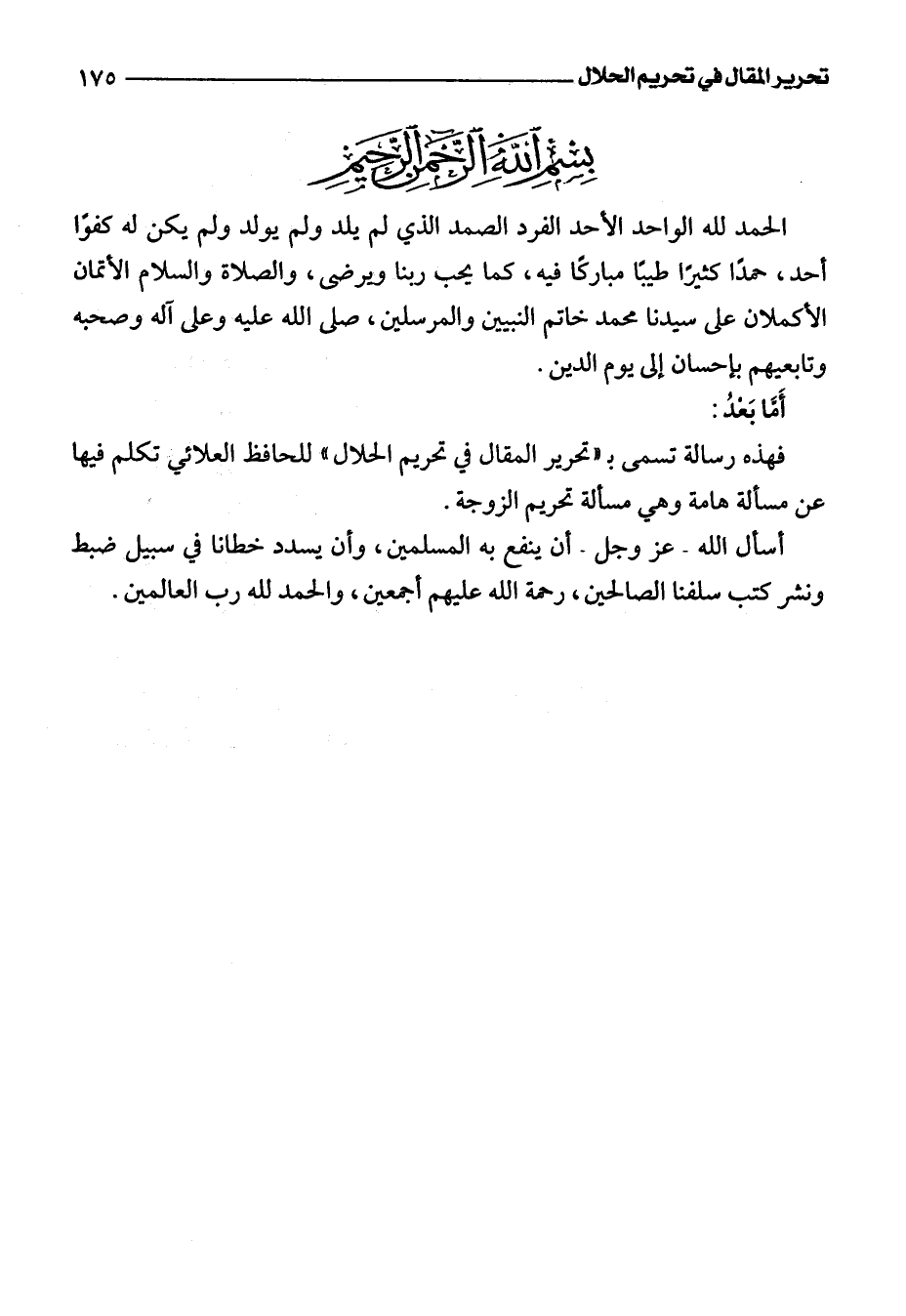 فهذه رسالة تسمى بـ "تحرير المقال في تحريم الحلال" للحافظ العلائي تكلم فيها عن مسألة هامة وهي مسألة تحريم الزوجة.