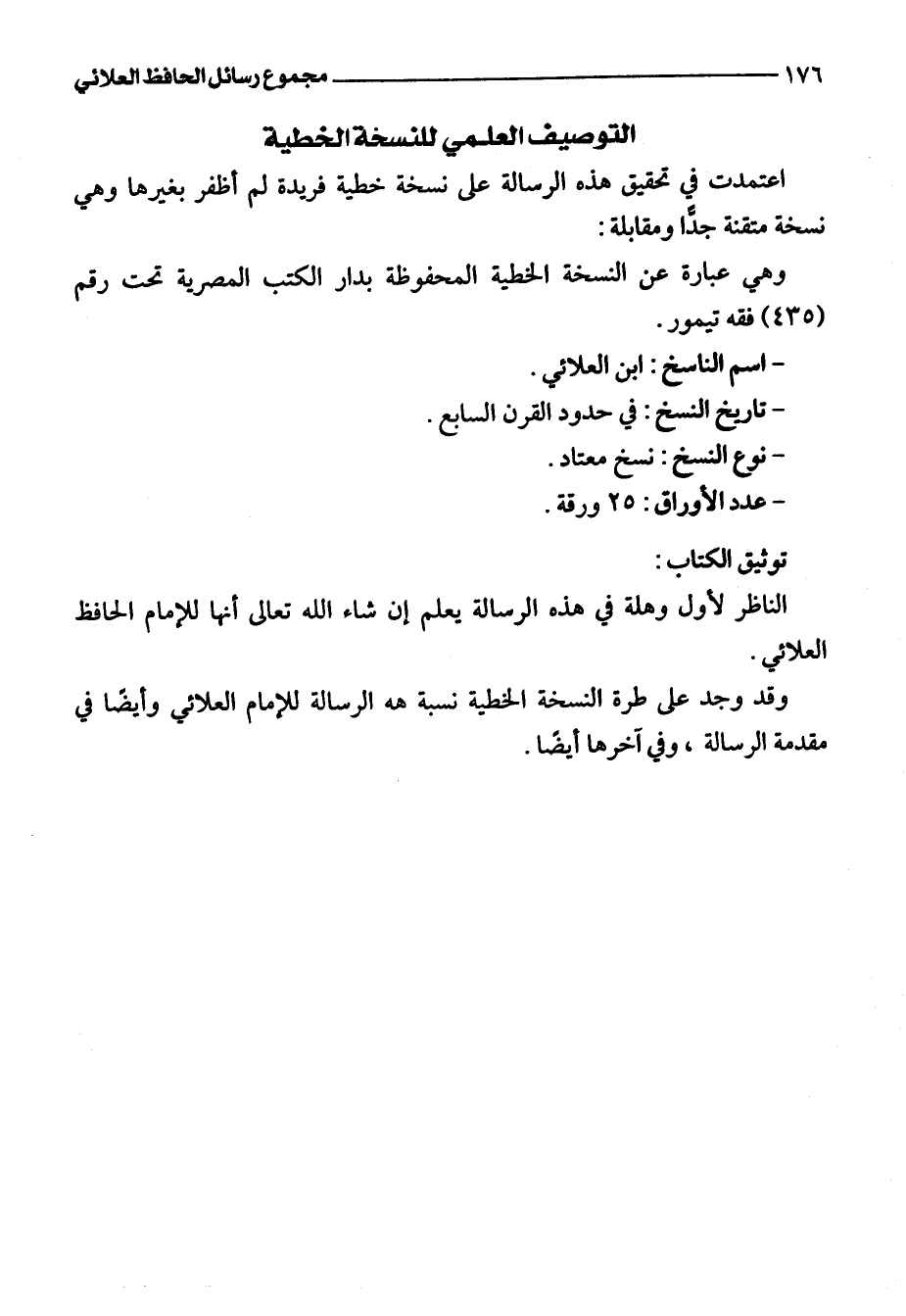 الناظر لأول وهلة في هذه الرسالة يعلم إن شاء اللَّه تعالى أنها للإمام الحافظ العلائي.