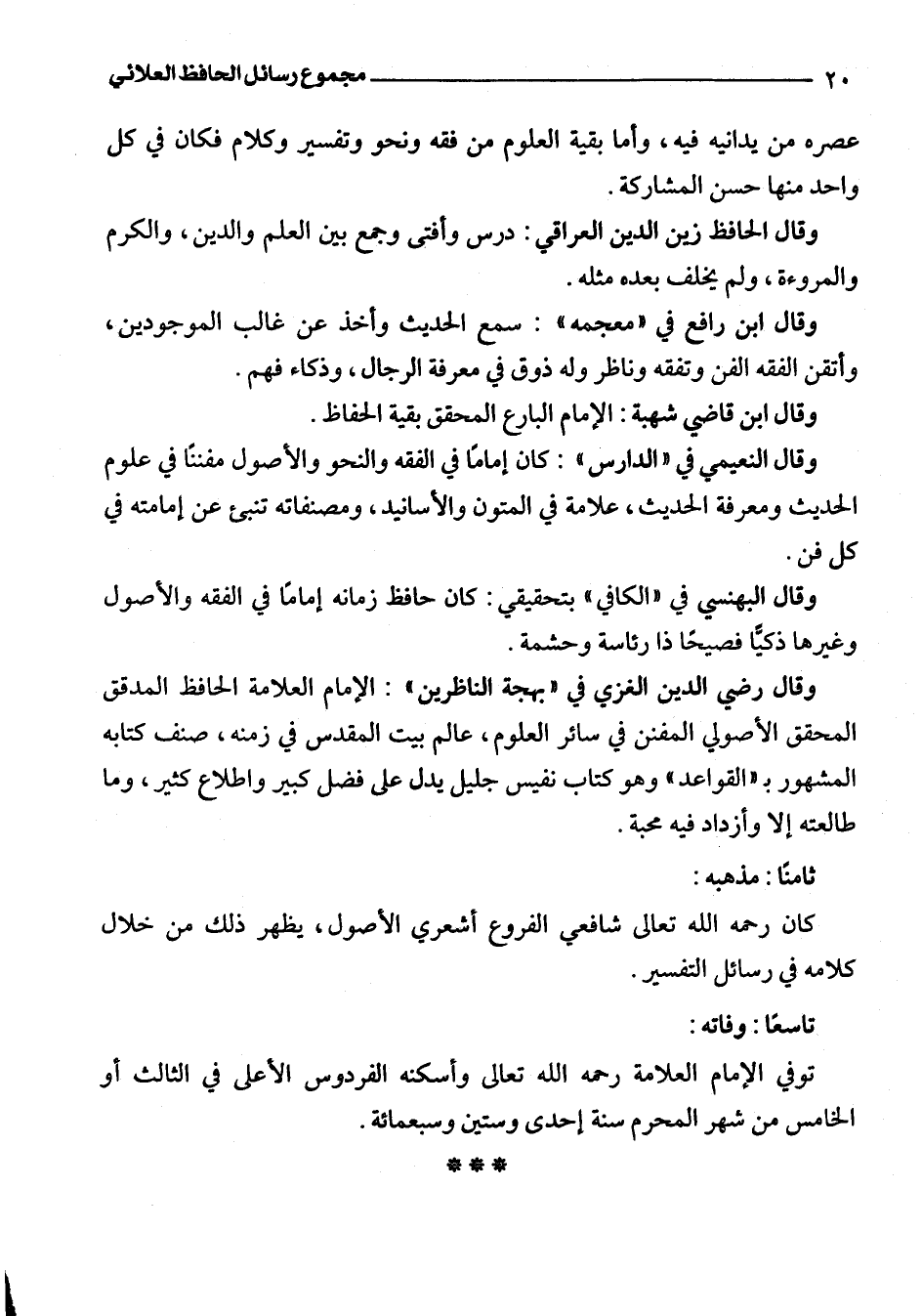 وقال ابن قاضي شهبة: الإمام البارع المحقق بقية الحفاظ.